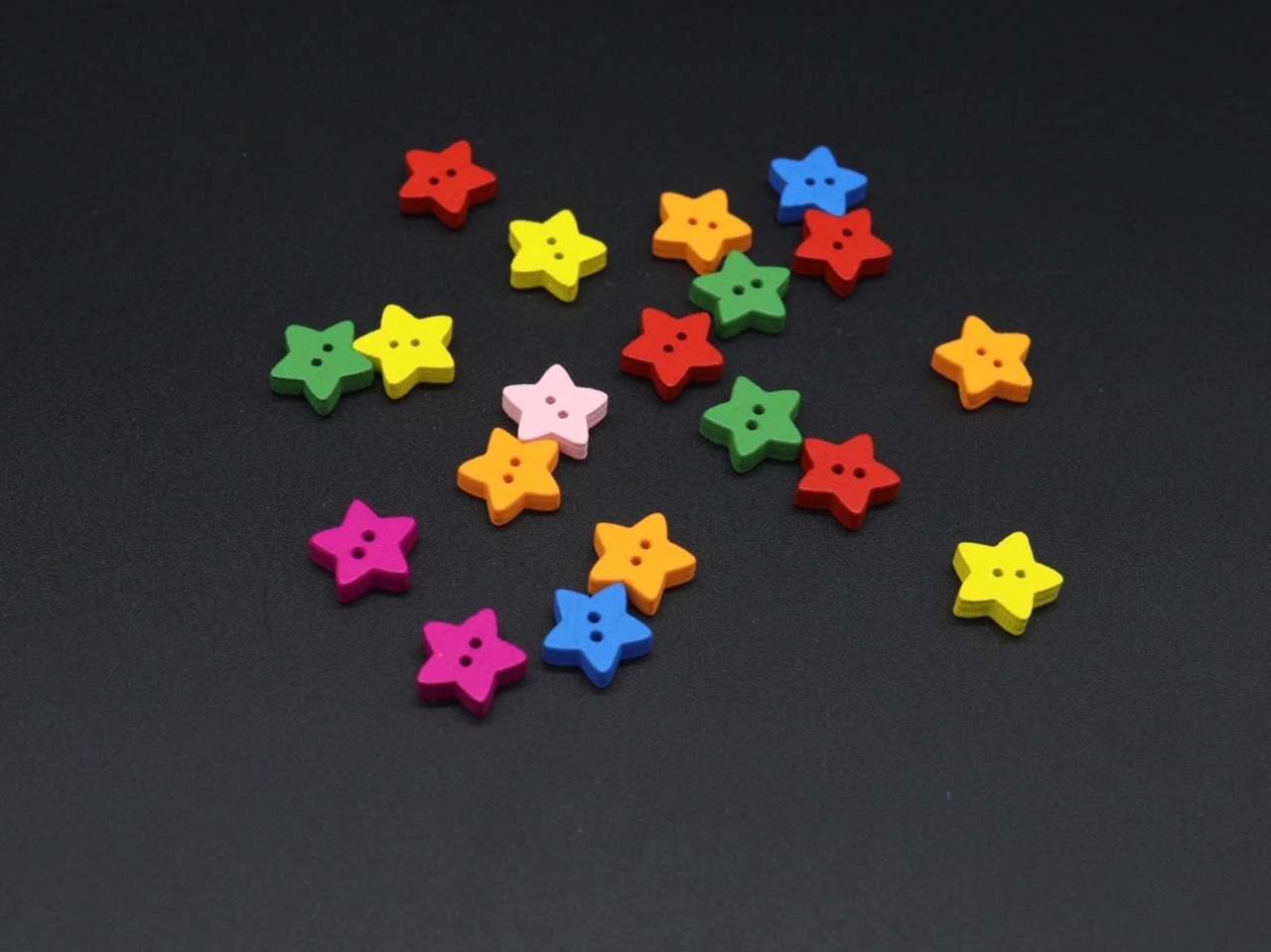 Пуговицы деревянные декоративные, Звезда, 13мм, Цвет «разноцветный»