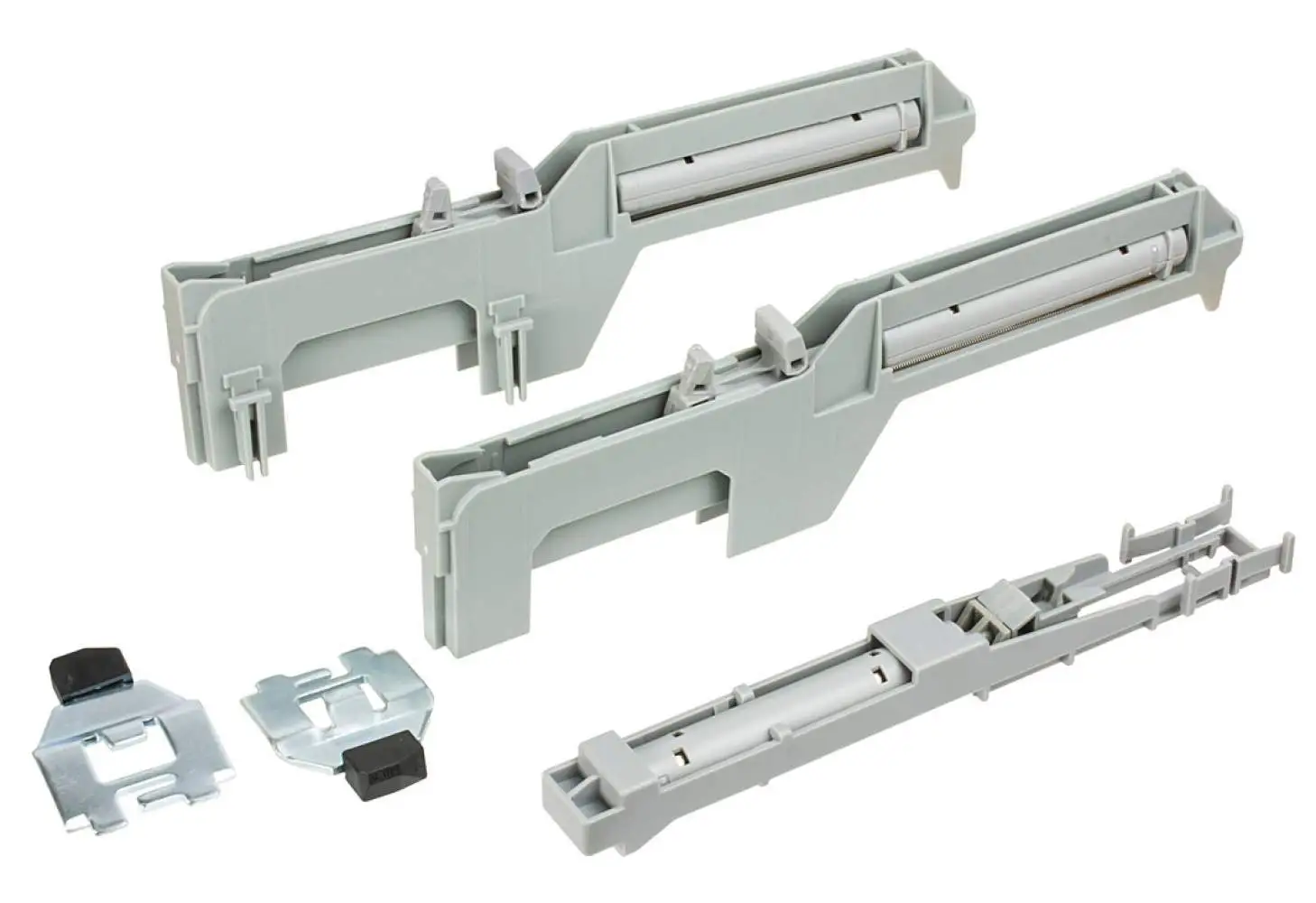 Демпферний механізм для систем висувних шаф. Виготовлений із пластику сірого кольору.