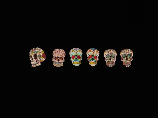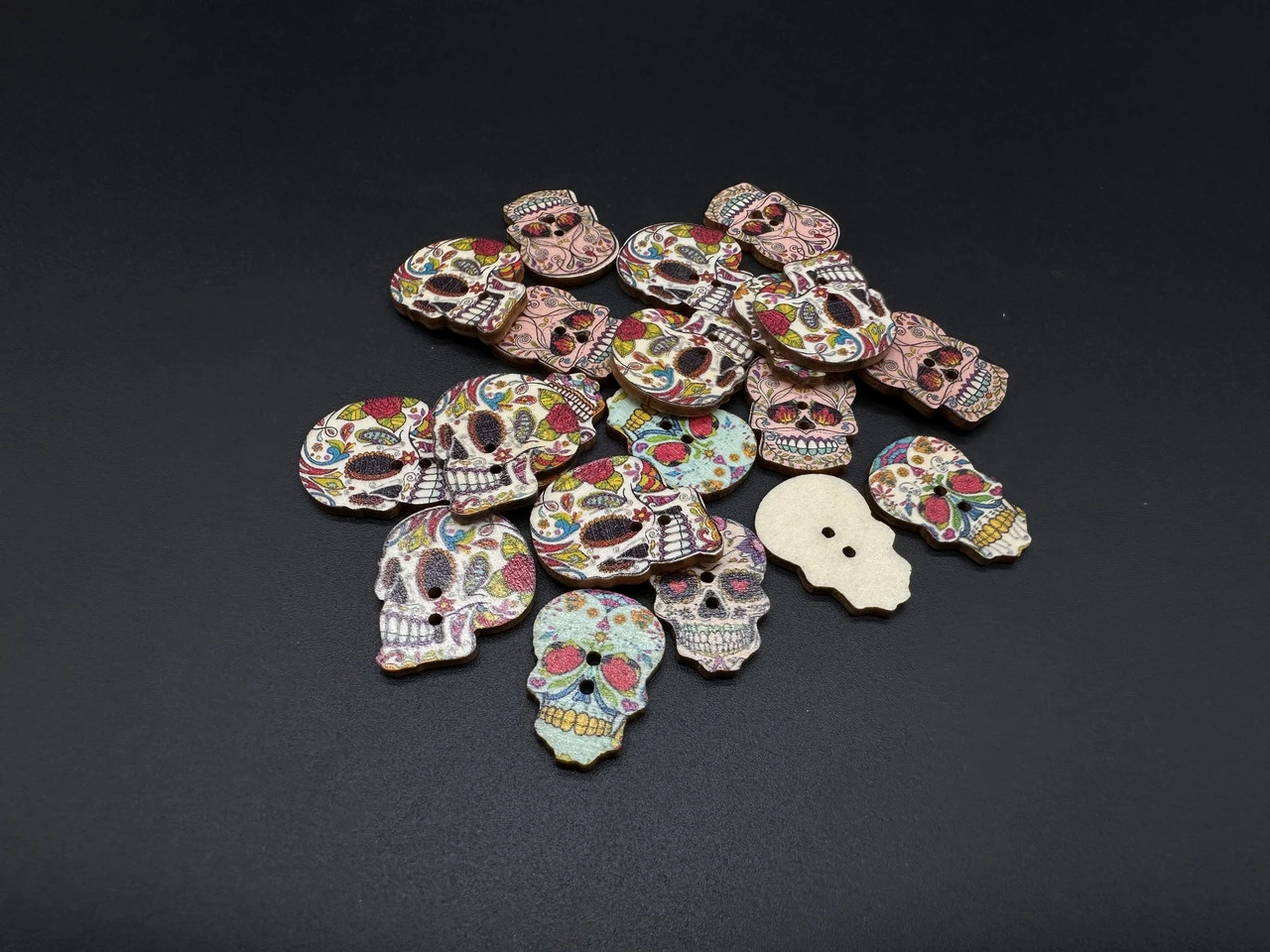 Пуговицы деревянные декоративные, Череп, 25х17мм, Цвет «разноцветный»
