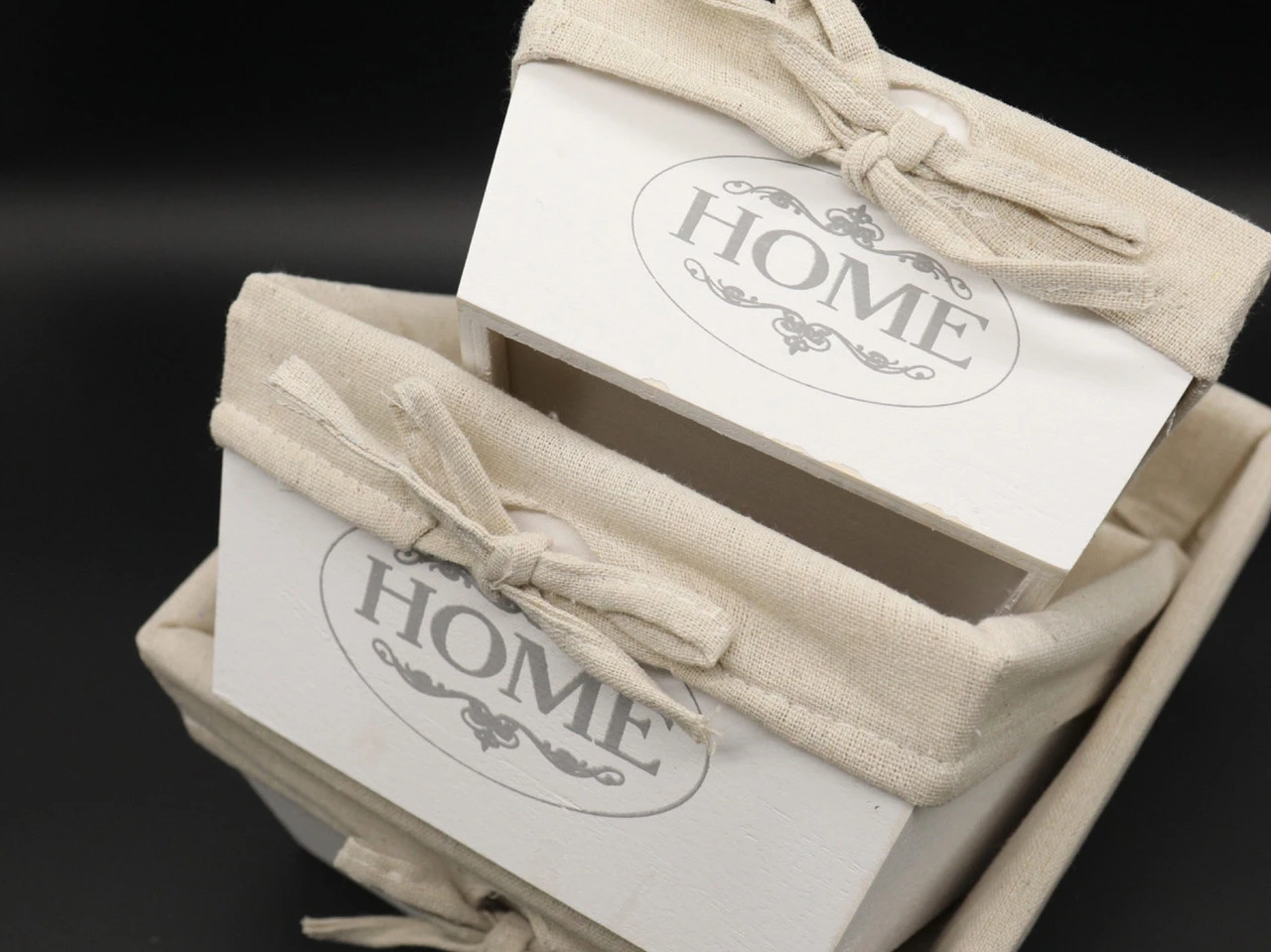 Ящик декоративный деревянный с тканью, 22х22х11см, 3шт, Цвет «белый»