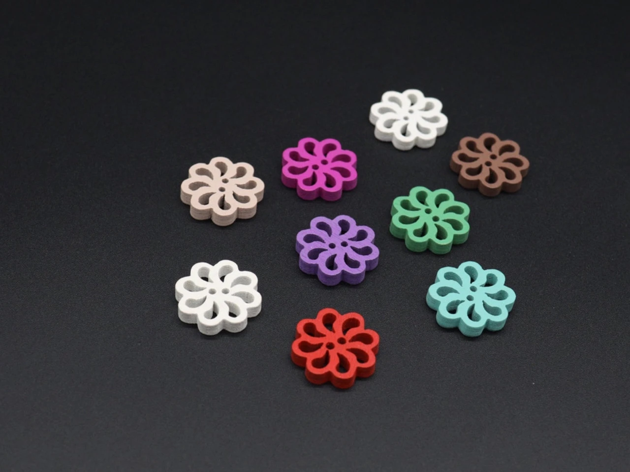 Пуговицы деревянные декоративные, Цветок, 20мм, Цвет «разноцветный»