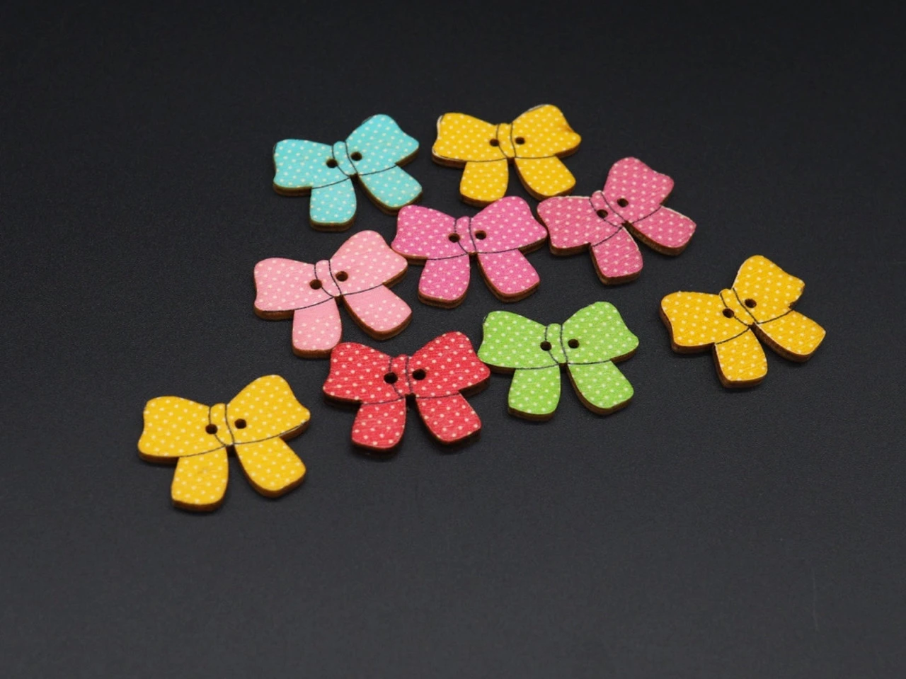 Пуговицы деревянные декоративные, Бант, 30мм, Цвет «разноцветный»