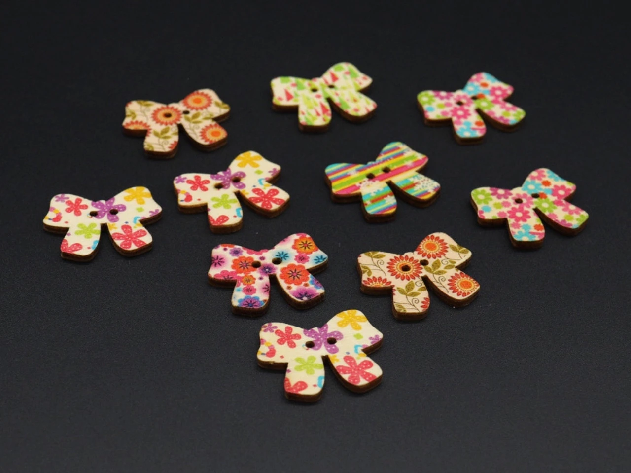 Пуговицы деревянные декоративные, Бант, 30мм, Цвет «разноцветный»