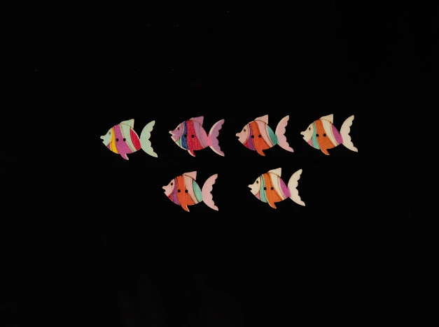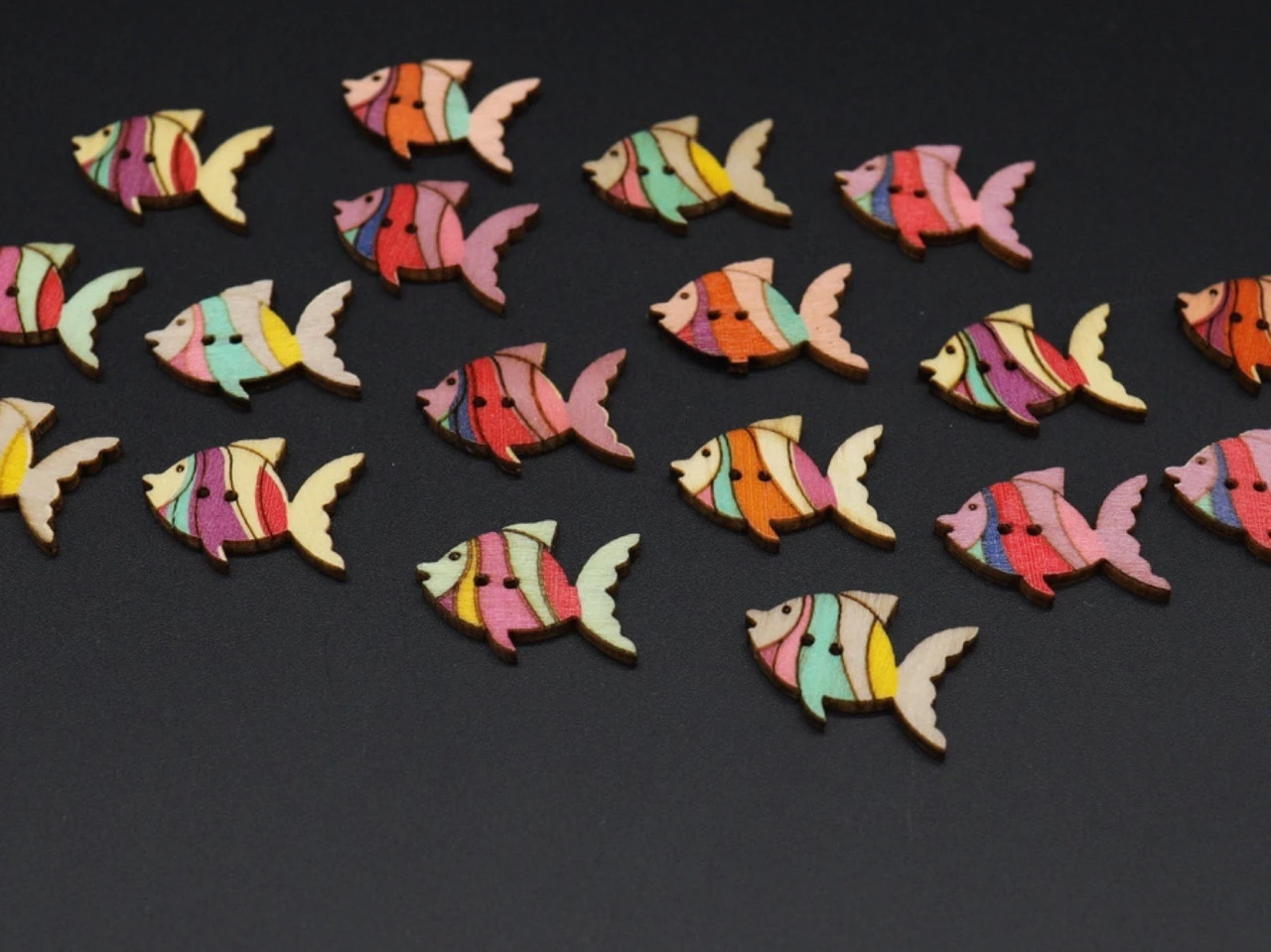 Пуговицы деревянные декоративные, Рыбка, 27мм, Цвет «разноцветный»