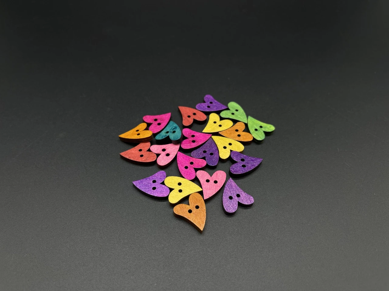 Пуговицы деревянные декоративные, Сердце, 18х16мм, Цвет «разноцветный»