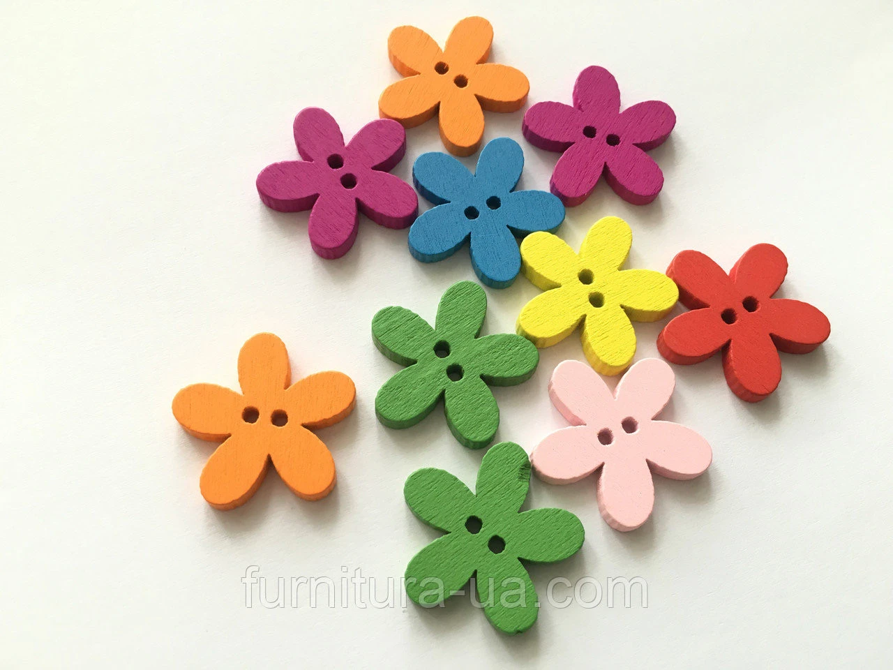 Пуговицы деревянные декоративные, Цветок, 25мм, Цвет «разноцветный»