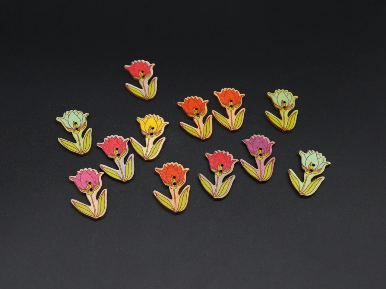 Пуговицы деревянные декоративные, Цветок, 40мм, Цвет «разноцветный»