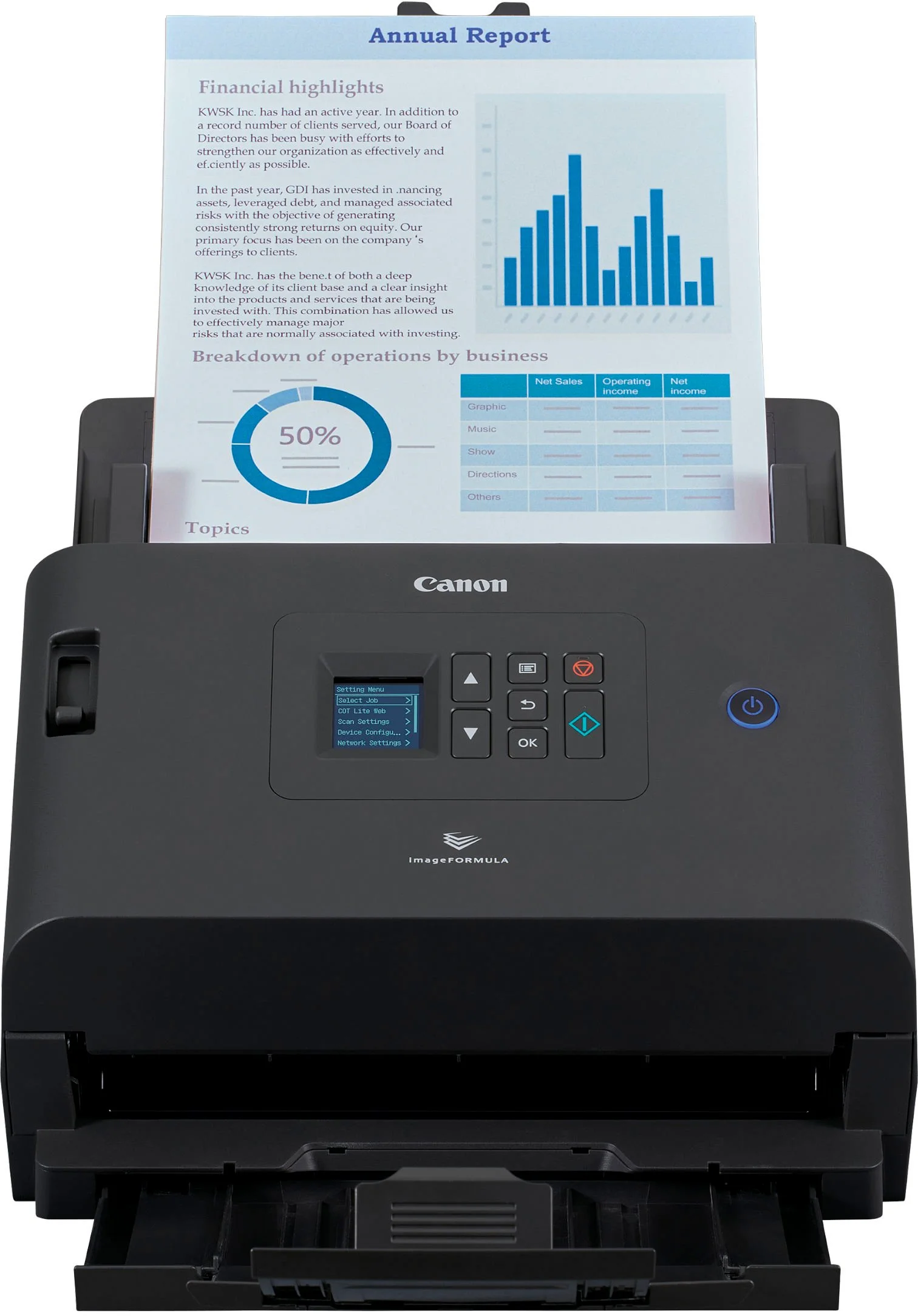 Документ-сканер Canon DR-S250N підтримує сканування формату A4 і має швидкість до 50 сторінок за хвилину. Він оснащений автоподавачем на 60 аркушів і підтримує двостороннє сканування. Ідеально підходить для офісного використання.