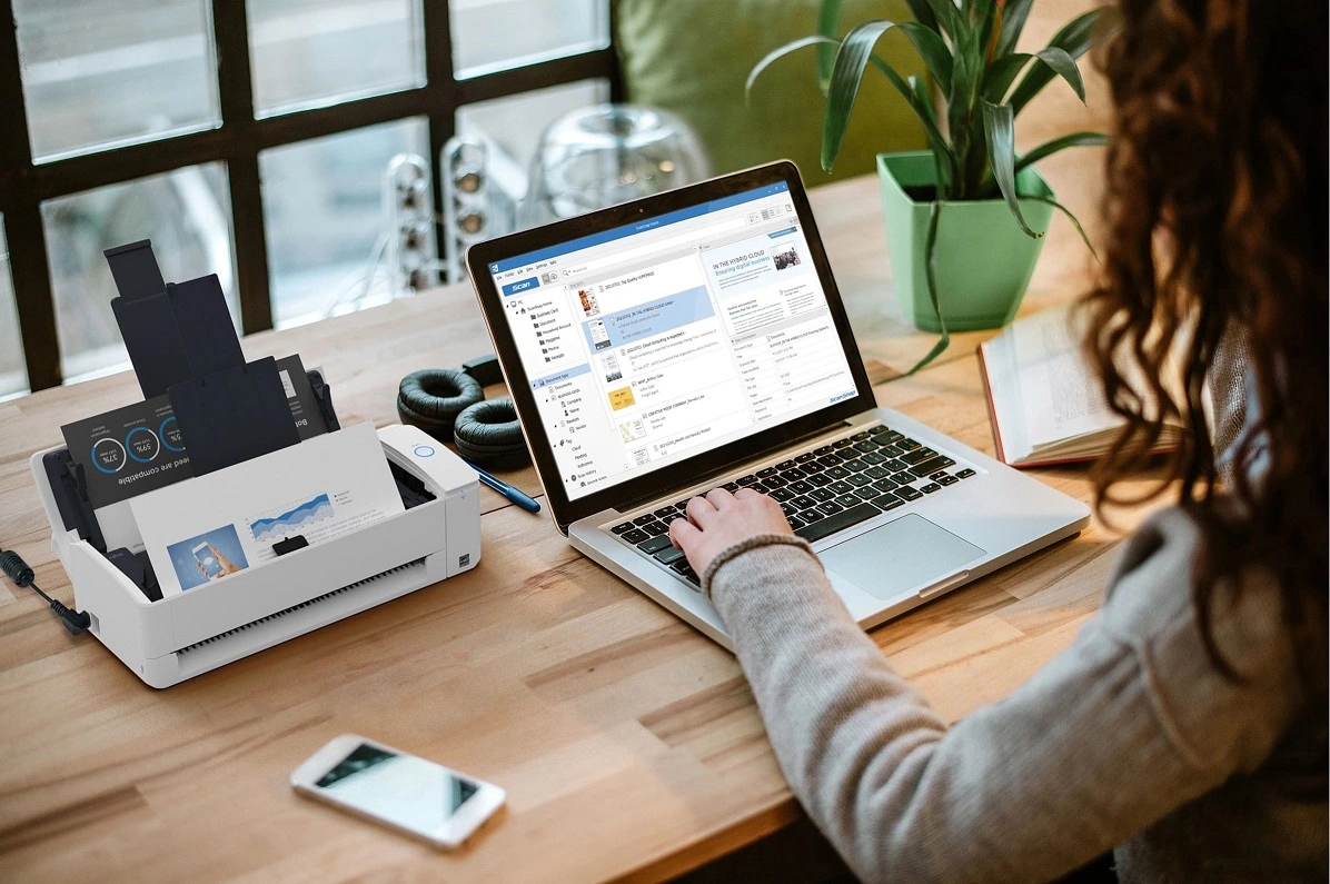 Протяжний сканер Fujitsu ScanSnap iX1300 PA03805-B001 з автоподатчиком ємністю 20 аркушів формату A4, підтримує сканування з оптичною роздільною здатністю 600, підключення до комп'ютера USB, автоматичне двостороннє сканування.
