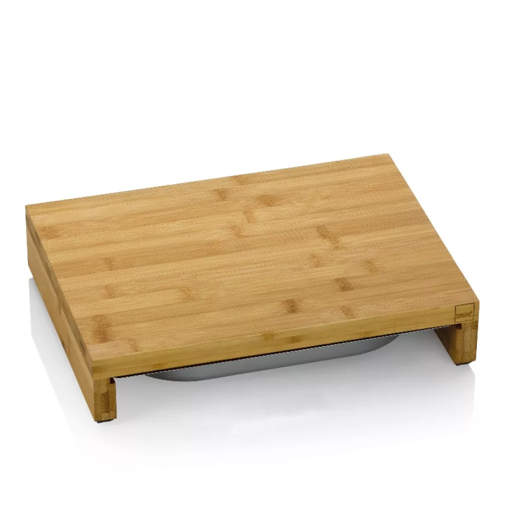 Напівпрофесійна обробна дошка від відомого німецького виробника посуду та кухонного приладдя — компанії KELA. Дошка призначена для швидкої та якісної обробки великого обсягу продуктів за короткий проміжок часу без використання додаткових ємностей. Для цього в нижній частині дошки розташований металевий піддон, в який можуть падати вже нарізані або нашатковані продукти. Сама дошка зроблена зі стебел бамбука — матеріалу жорсткого та міцного. Тому дошка KELA Kenina відрізняється високою зносостійкістю навіть при інтенсивній експлуатації. Висувний піддон виготовлений із високоякісної харчової нержавіючої сталі 18/10. Цей сплав надзвичайно міцний, зовсім не схильний до корозії, і не впливає на смакові якості продуктів. Обробна дошка з висувним піддоном KELA Kenina підходить як для домашнього використання, так і професійних кухарів. Дозволяє оптимізувати та прискорити процес нарізування, а відповідно і скоротити час приготування їжі.