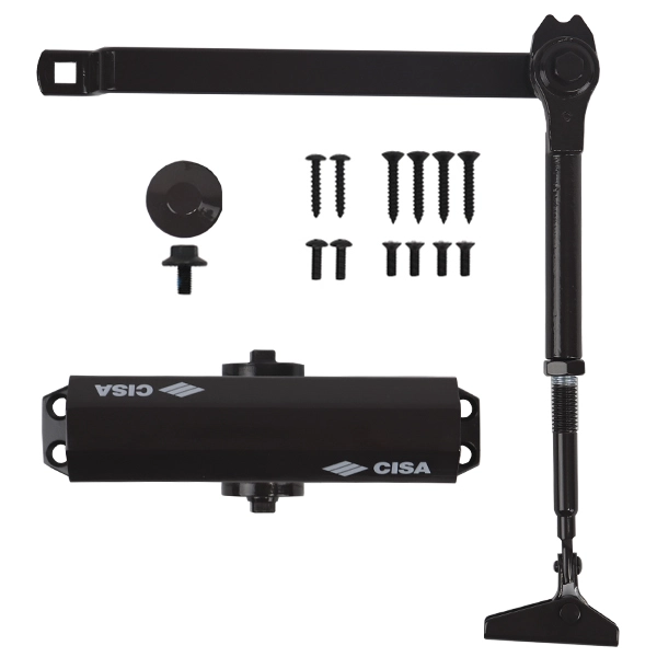 CISA 60461.03 – це дотягувач, який встановлюється накладним монтажем на внутрішні та зовнішні дверні полотна з максимальною вагою до 80 кг та шириною до 1100 мм. Безпосередньо на корпусі є можливість регулювати основну швидкість та швидкість захлопування. Загалом завдяки таким можливостям регулювання можна добитись максимально індивідуального налаштування зачинення дверей так, як Вам потрібно.
