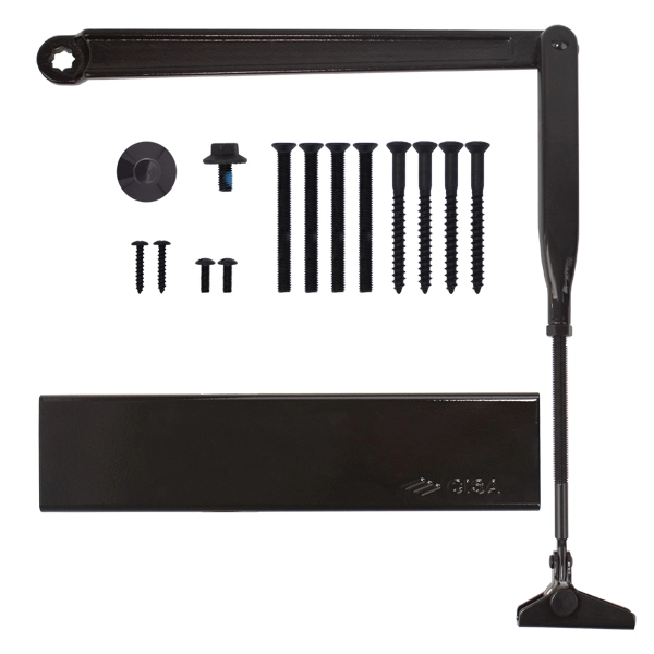 Також в даній моделі сила закривання EN 2-4 регулюється обертанням гвинта на боковій частині корпуса. В комплектації присутня стандартна тяга без фіксації дверного полотна у відкритому положенні. Проте даний дотягувач сертифікований для використання з протипожежними дверима.