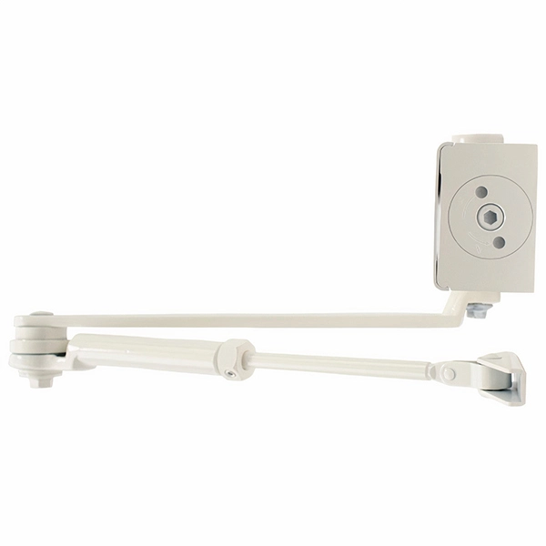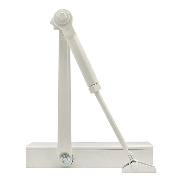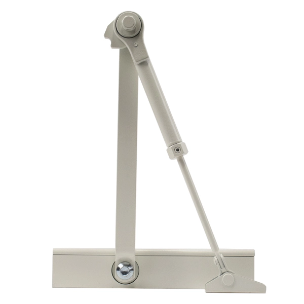 Також в даній моделі сила закривання EN 2-4 регулюється обертанням гвинта на боковій частині корпуса. В даній комплектації присутня стандартна тяга з фіксацією дверного полотна у відкритому положенні до 130°. Це дає можливість залишити двері відчиненими для провітрювання чи для зручності користування у комерційних приміщеннях.