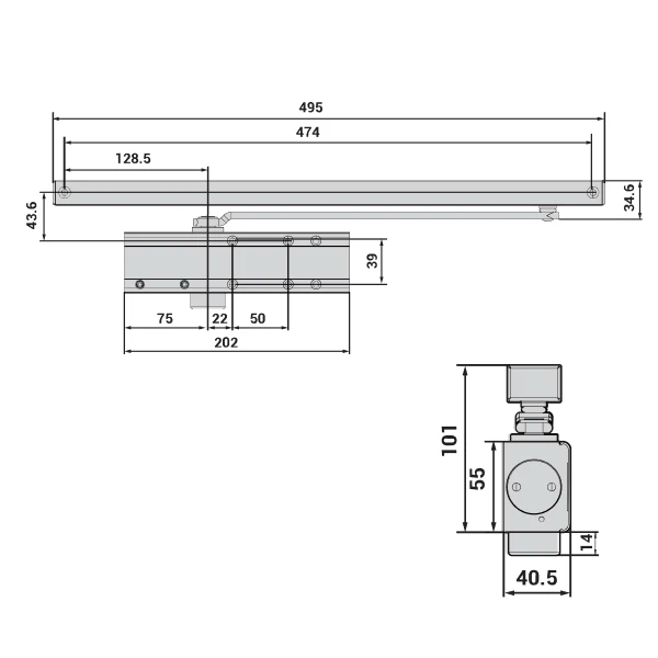 - Тип тяги доводчика скользящая с фиксацией