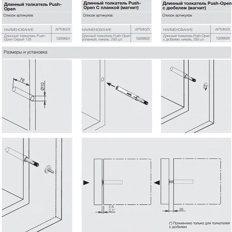 Длинный выталкиватель SAMET Push-Open 10299924 Серый