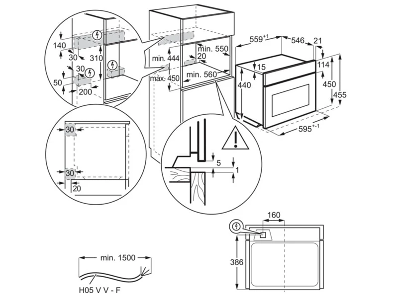 - Размеры ниши для встраивания (ВхШхГ), см 450-560-550 мм