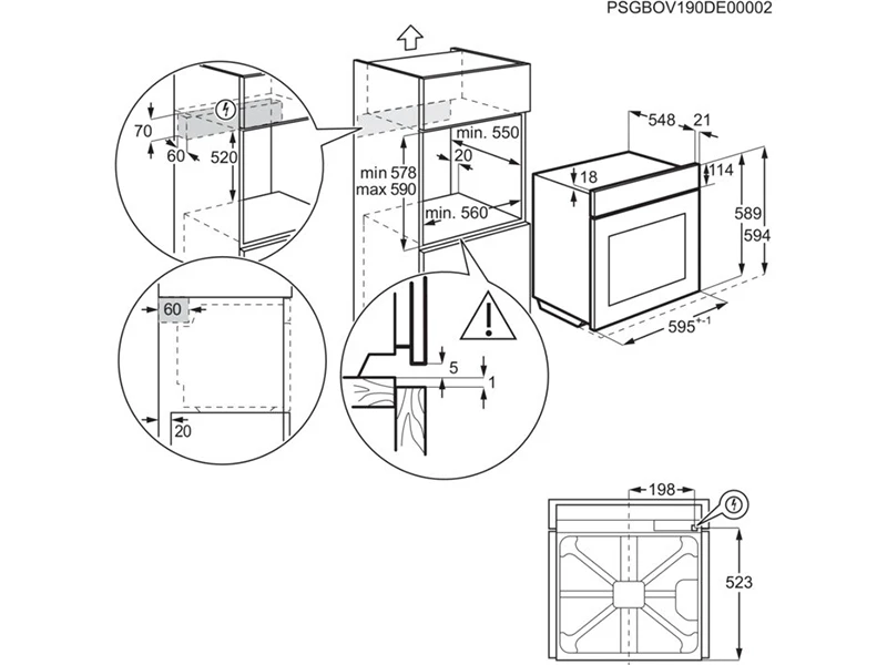 - Размеры ниши для встраивания (ВхШхГ), см 59.0 x 56.0 x 55.0