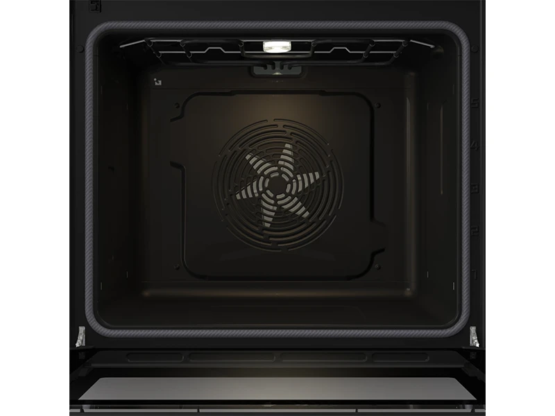 Поєднання продуманої системи циркуляції повітря, рівномірного розподілення простору між деками та спеціальної дещо закругленої камери забезпечує ідеальне випікання страв на будь-якому рівні. А великий розмір духової шафи ще й забезпечує чудовий огляд.