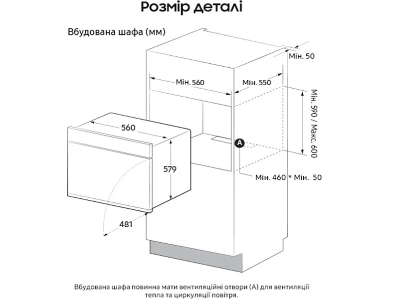 - Размеры ниши для встраивания (ВхШхГ), см 59.0-60.0 х 56.0 х 55.0 см