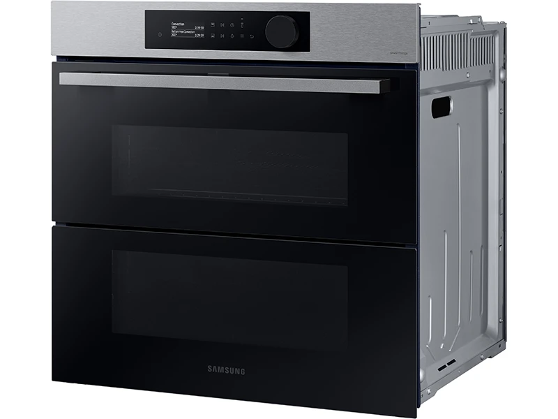 Готуйте різні страви одночасно. Верхня і нижня зони Dual Cook Flex працюють незалежно одна від одної. Використовуйте верхню зону для приготування невеликих страв, обидві зони для страв з різними налаштуваннями температури й часу, і цілу духовку для великих страв. Дверцята на петлях дозволяють легко отримати доступ до верхньої частини.