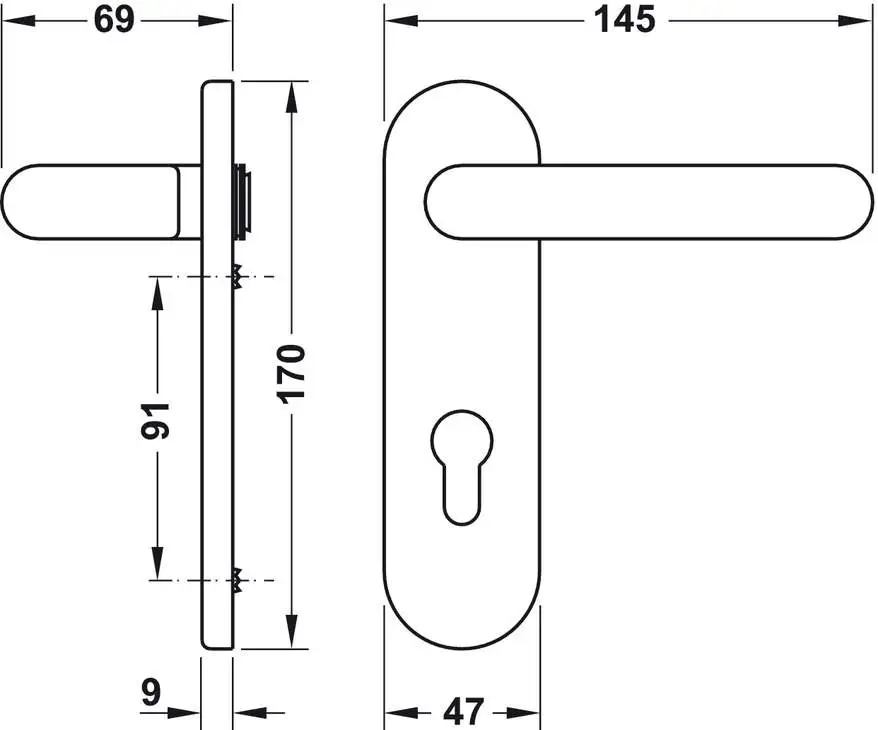 Дверна ручка натискна PED 100 чорний сталева 91152126