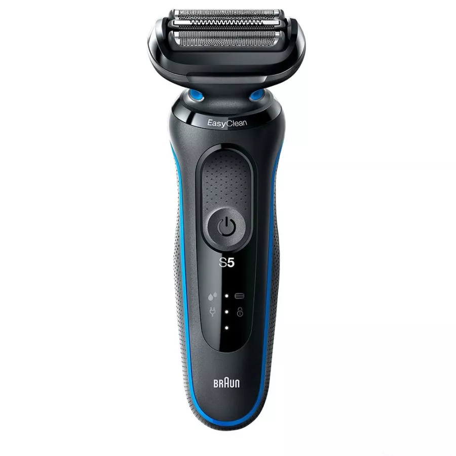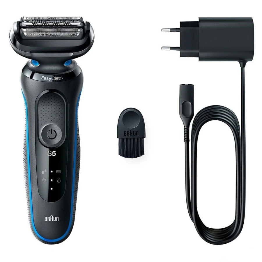 Braun Series 5 51-B1000s BLACK/BLUE - гладке гоління стало простіше: 3 гнучкі леза цієї електробритви плавно повторюють контури вашого обличчя, а система EasyClean дозволяє швидко і легко чистити, не знімаючи голки для гоління. Ефективний навіть при жорсткій щетині: технологія AutoSense аналізує щетину та регулює потужність залежно від її густоти, захоплюючи та підрівнюючи більше волосся при кожному голінні.