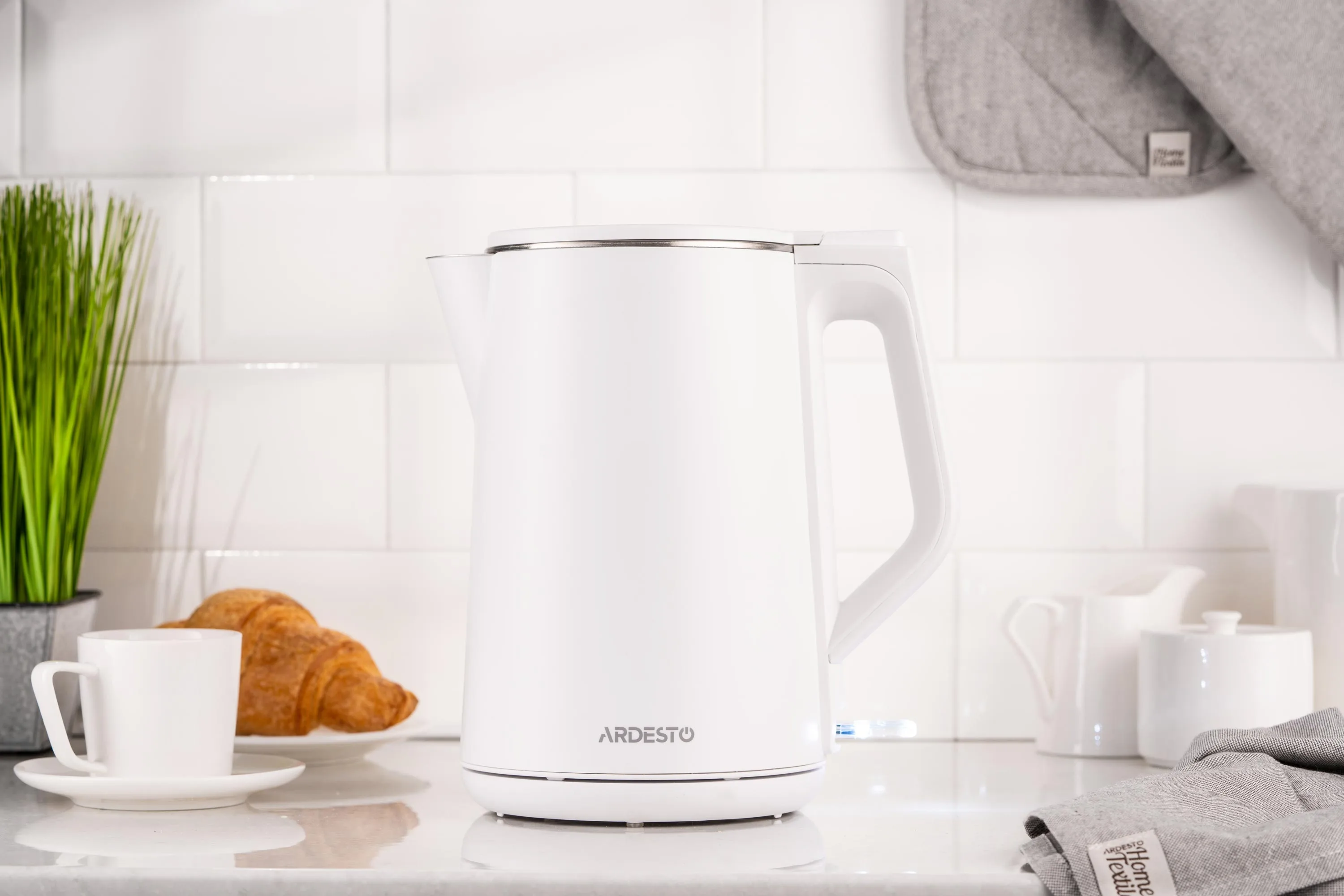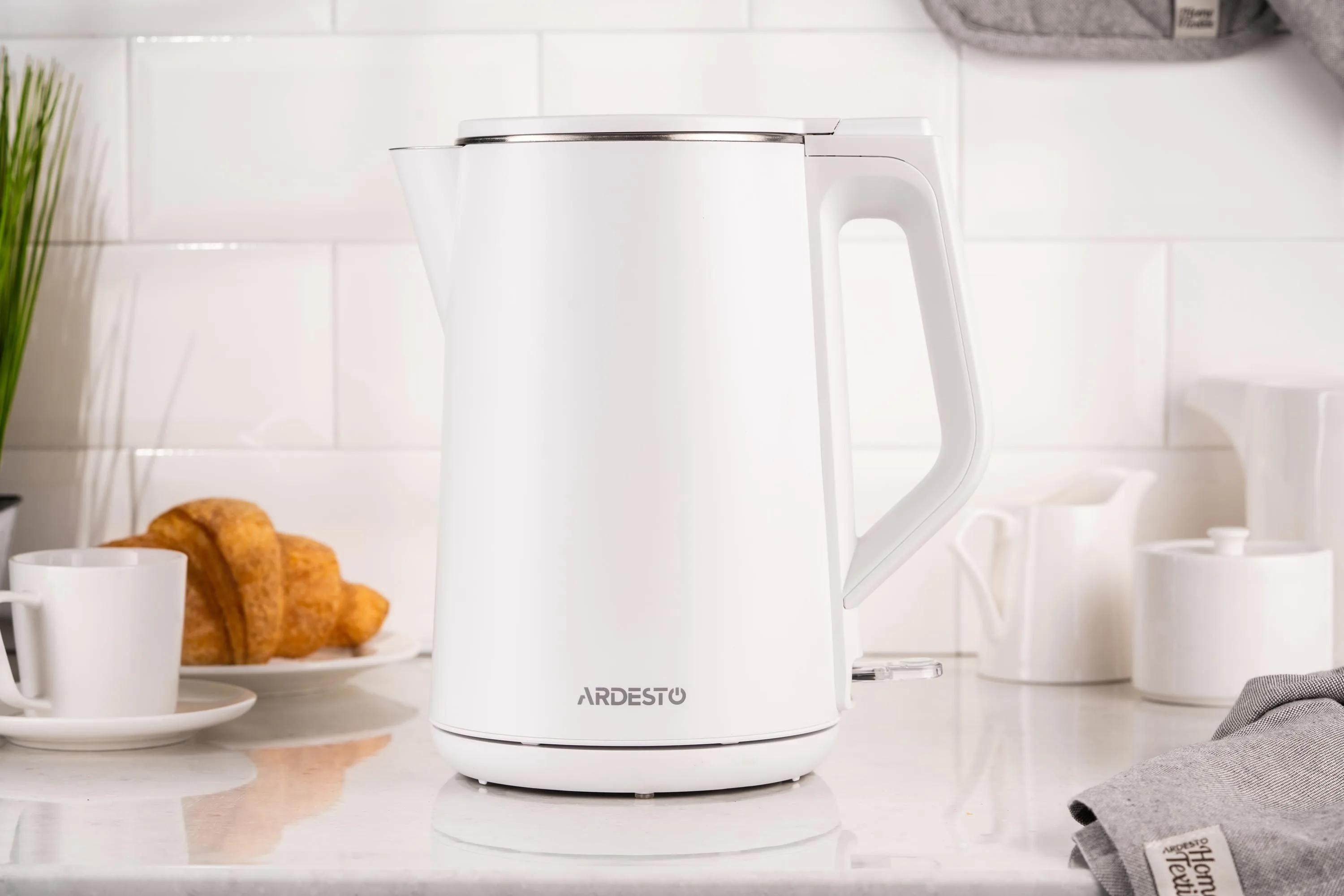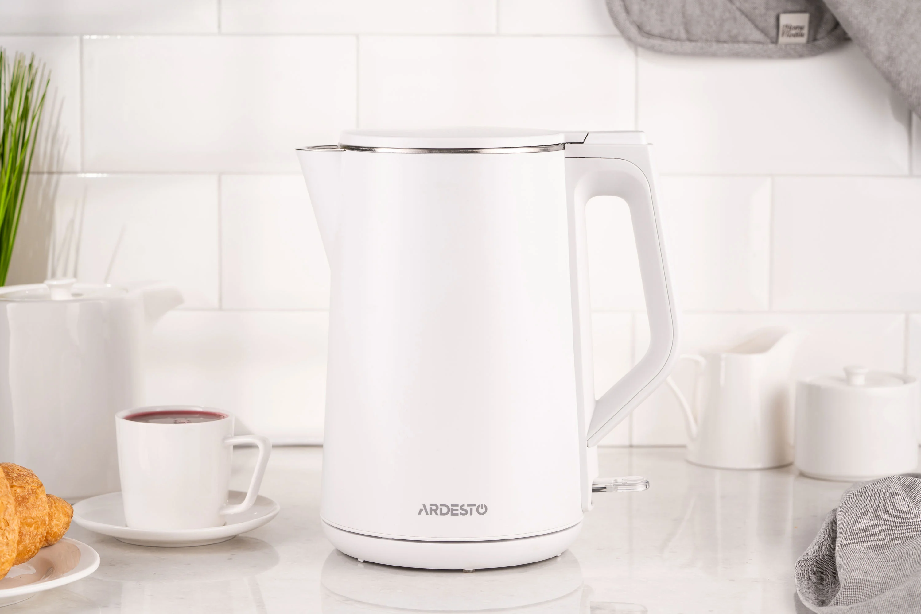 Електрочайник Ardesto 1.5л, Strix, подвійні стінки, білий глянець