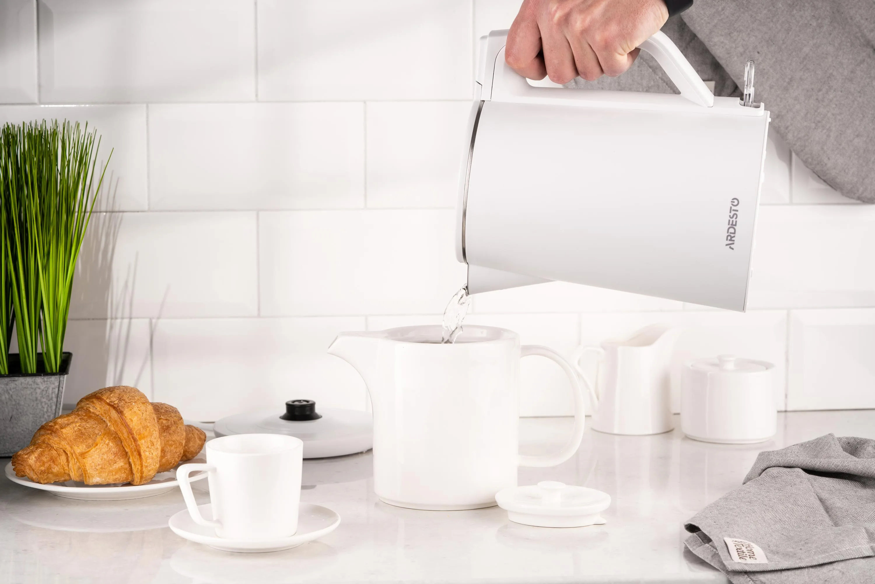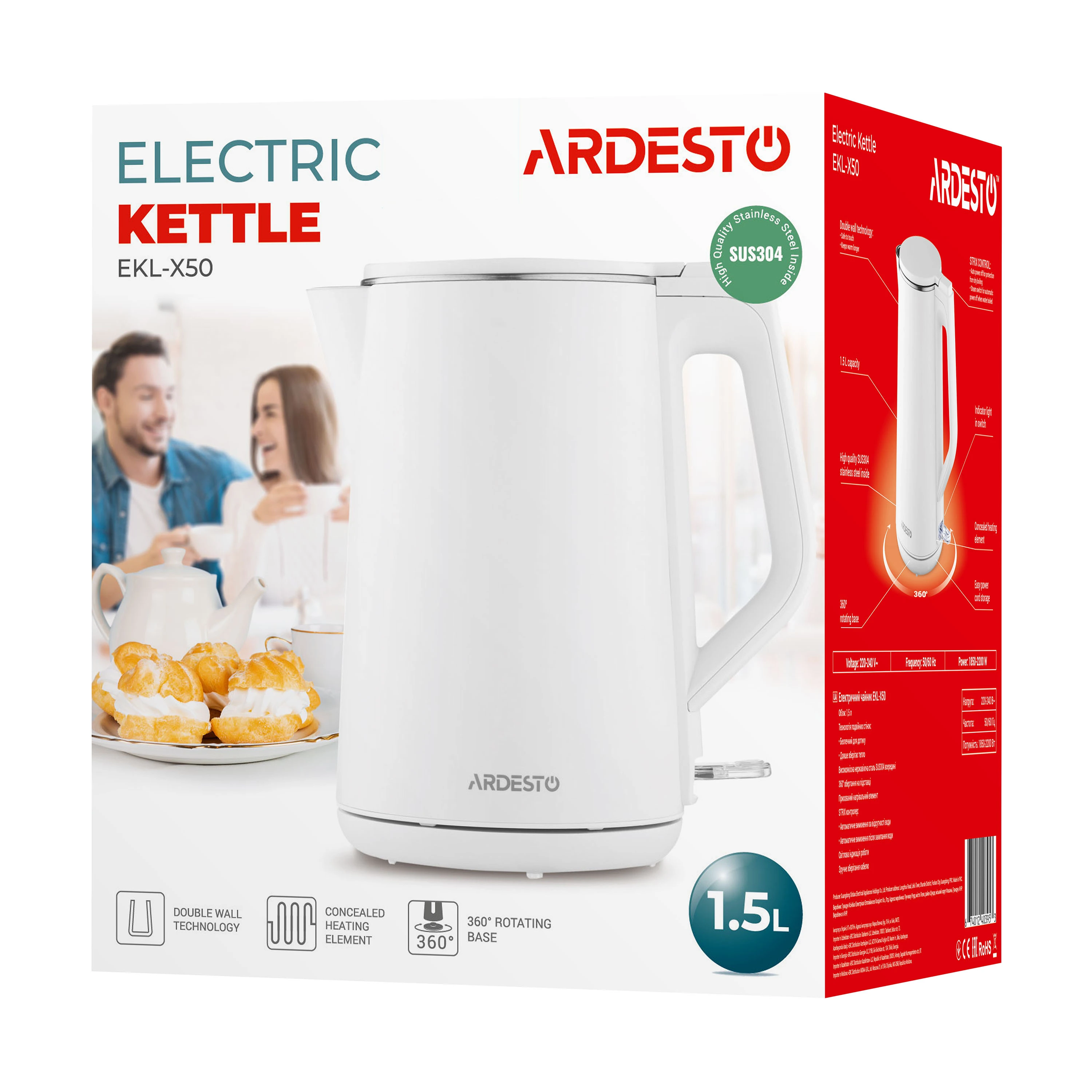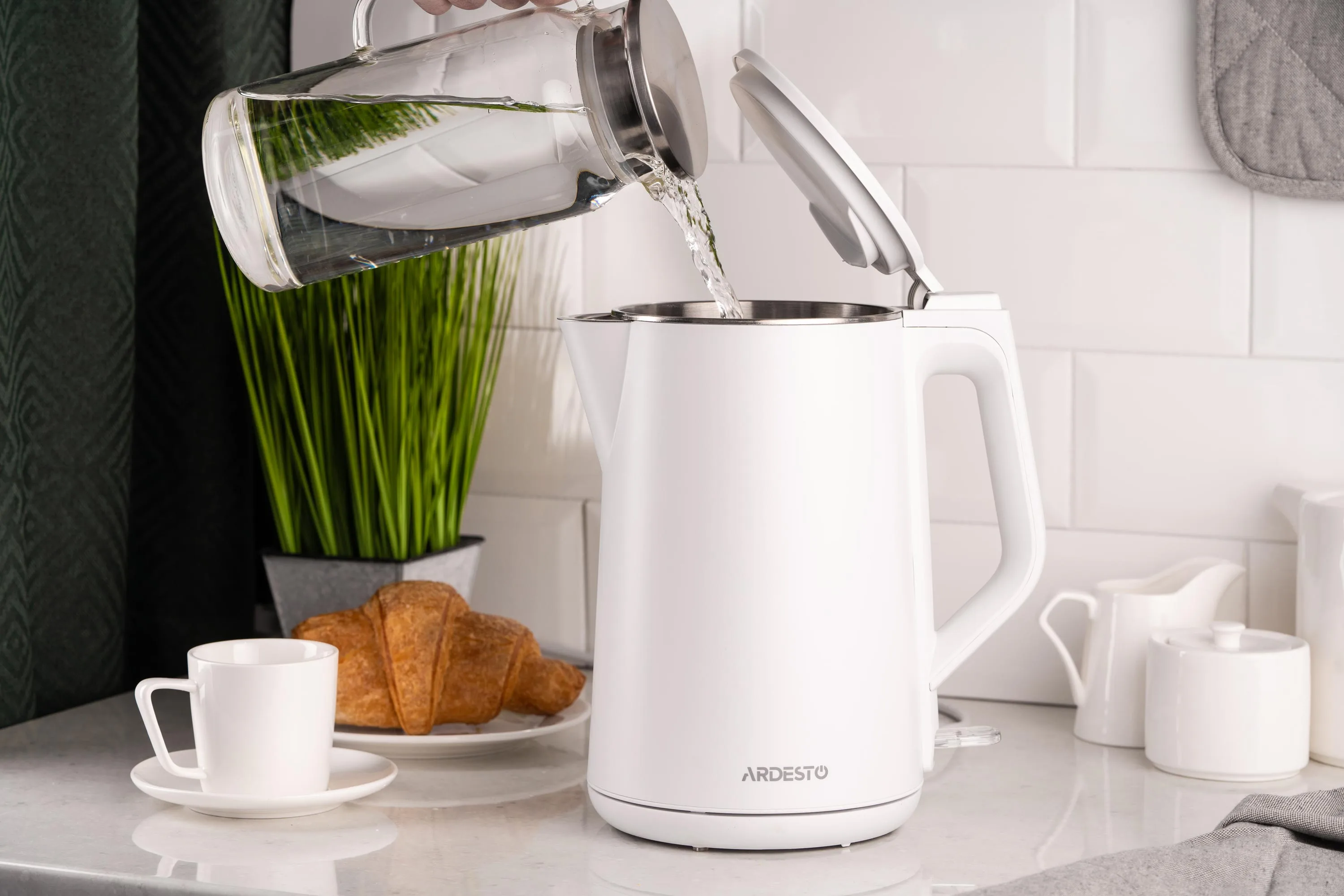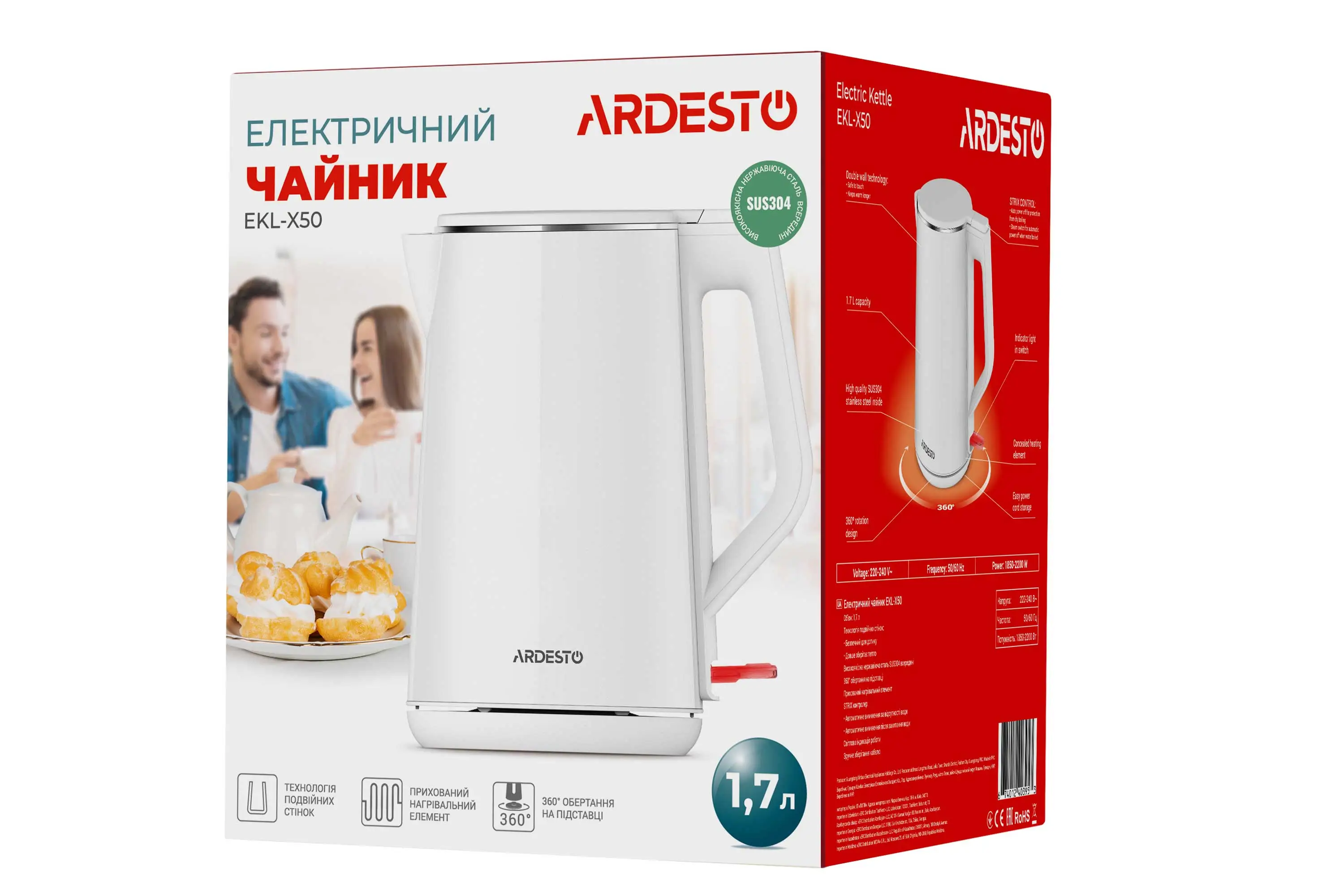 Електрочайник Ardesto 1.5л, Strix, подвійні стінки, білий глянець