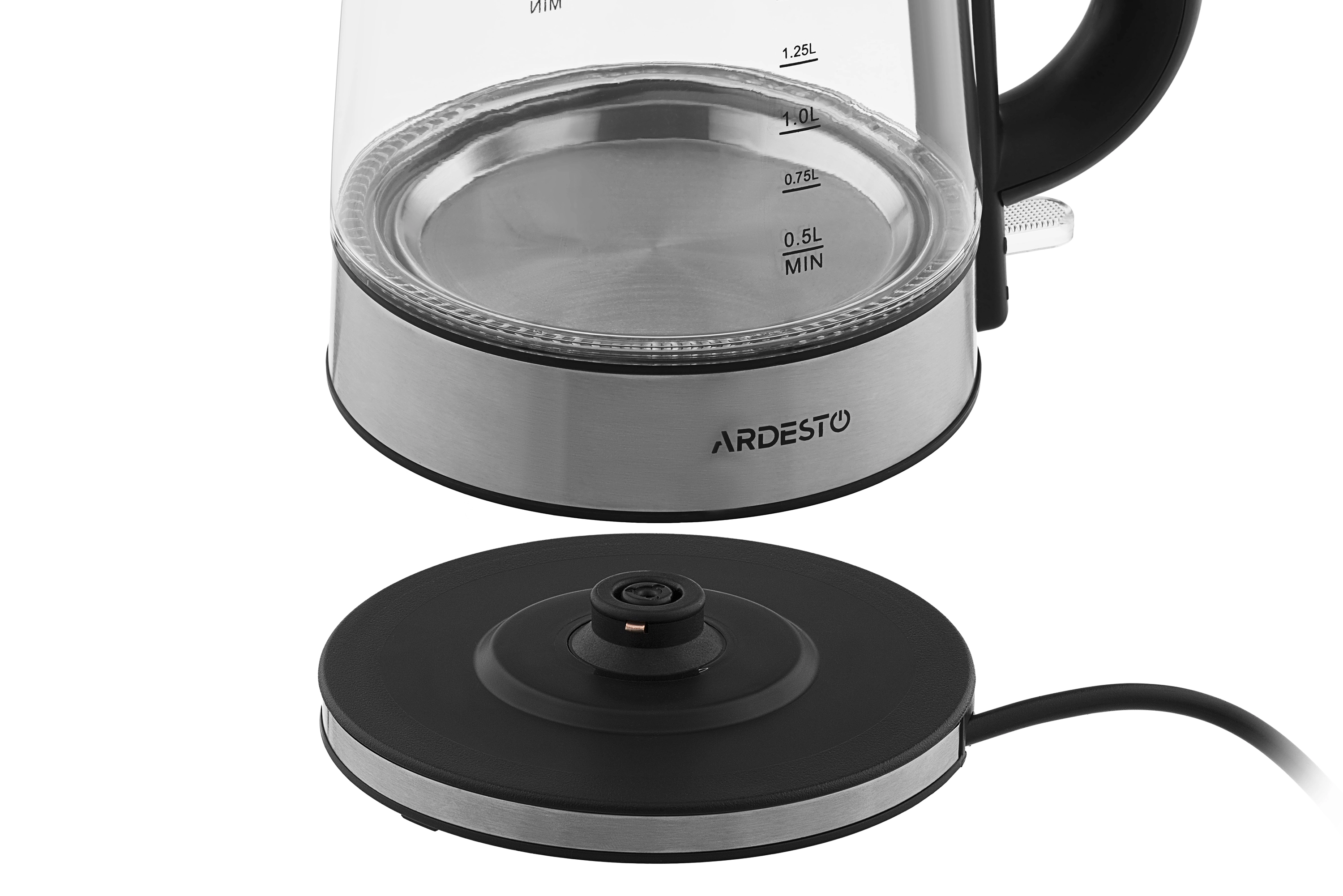 Електрочайник Ardesto 1.7л, Strix, скло, сріблясто-чорний