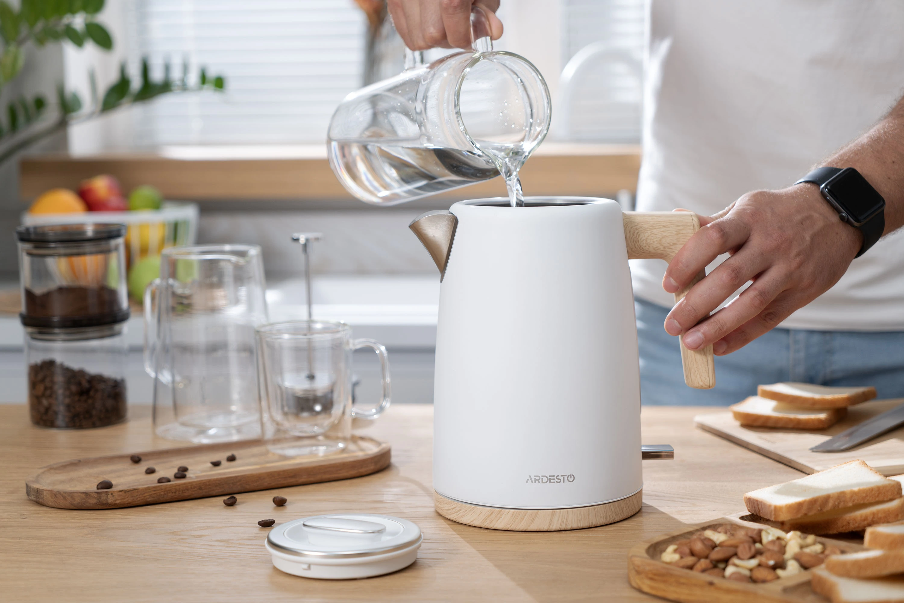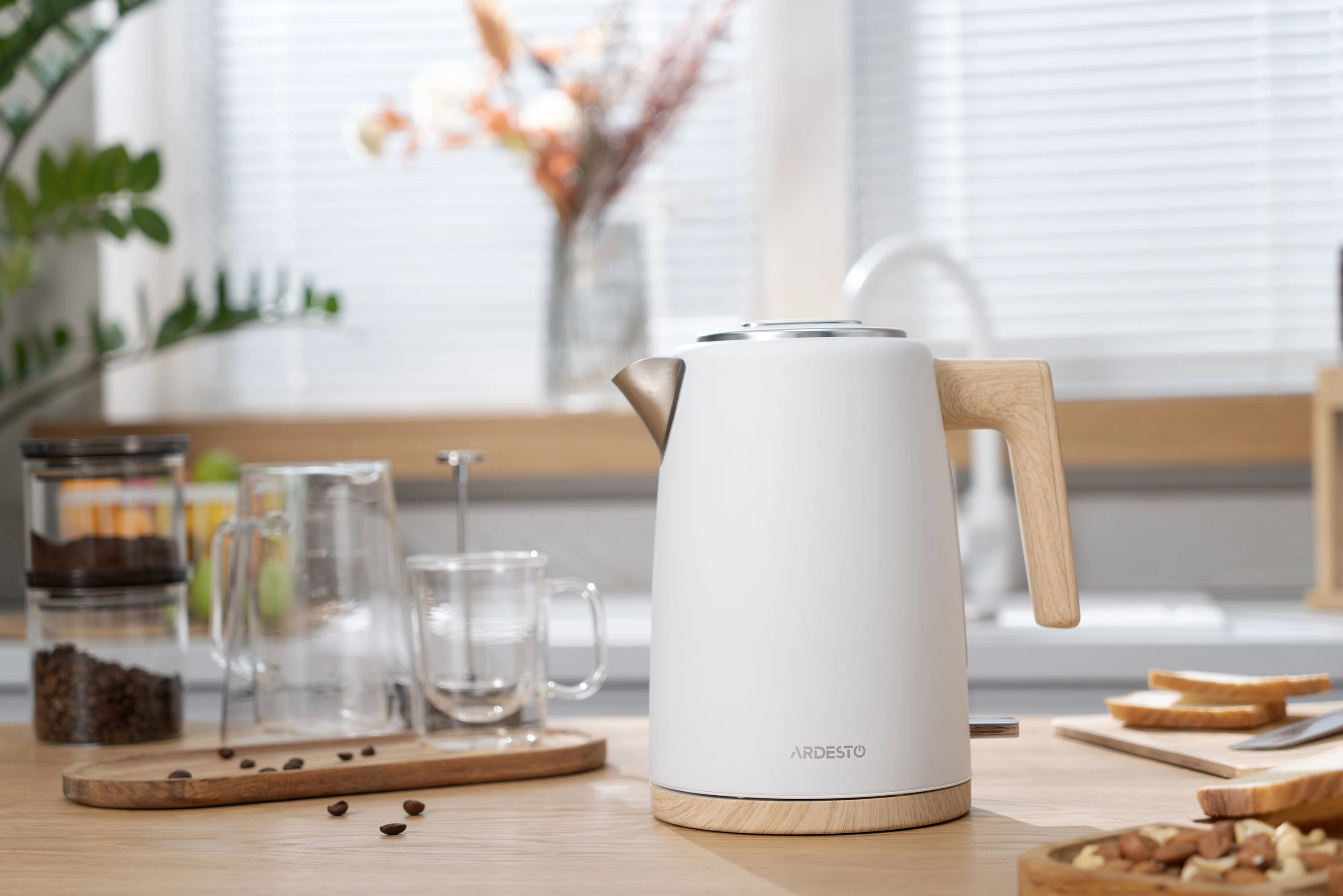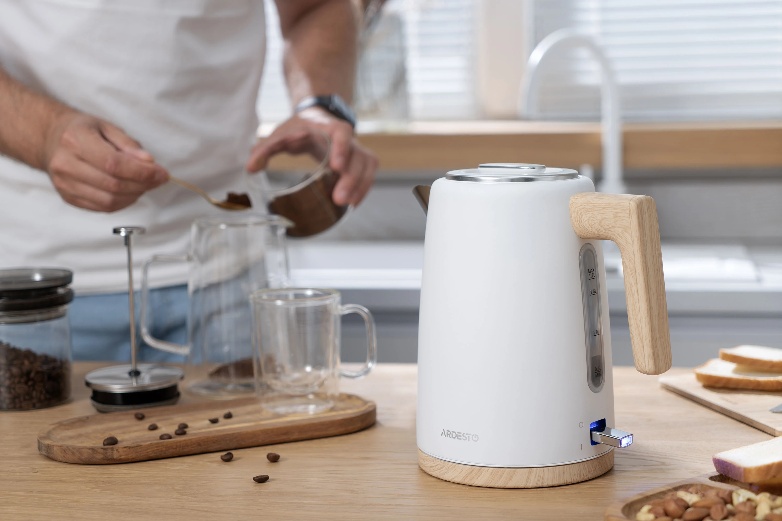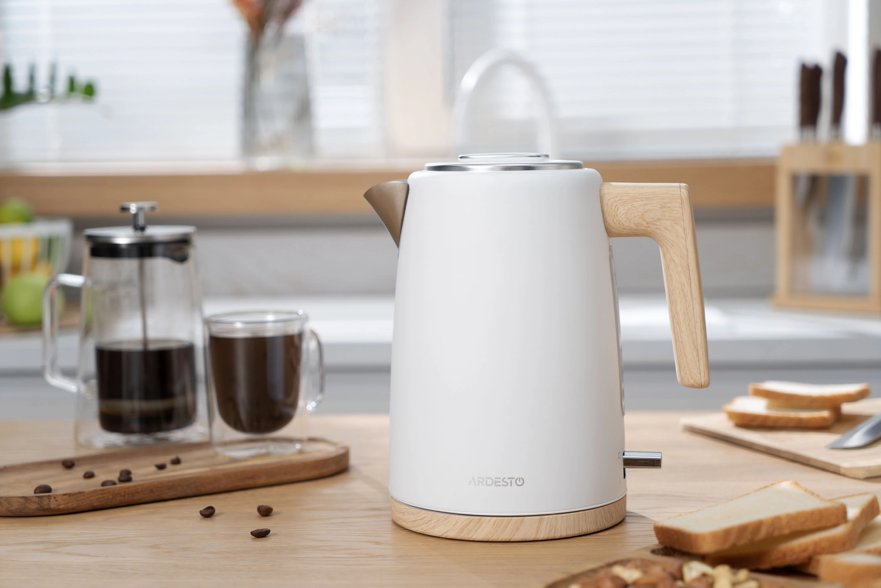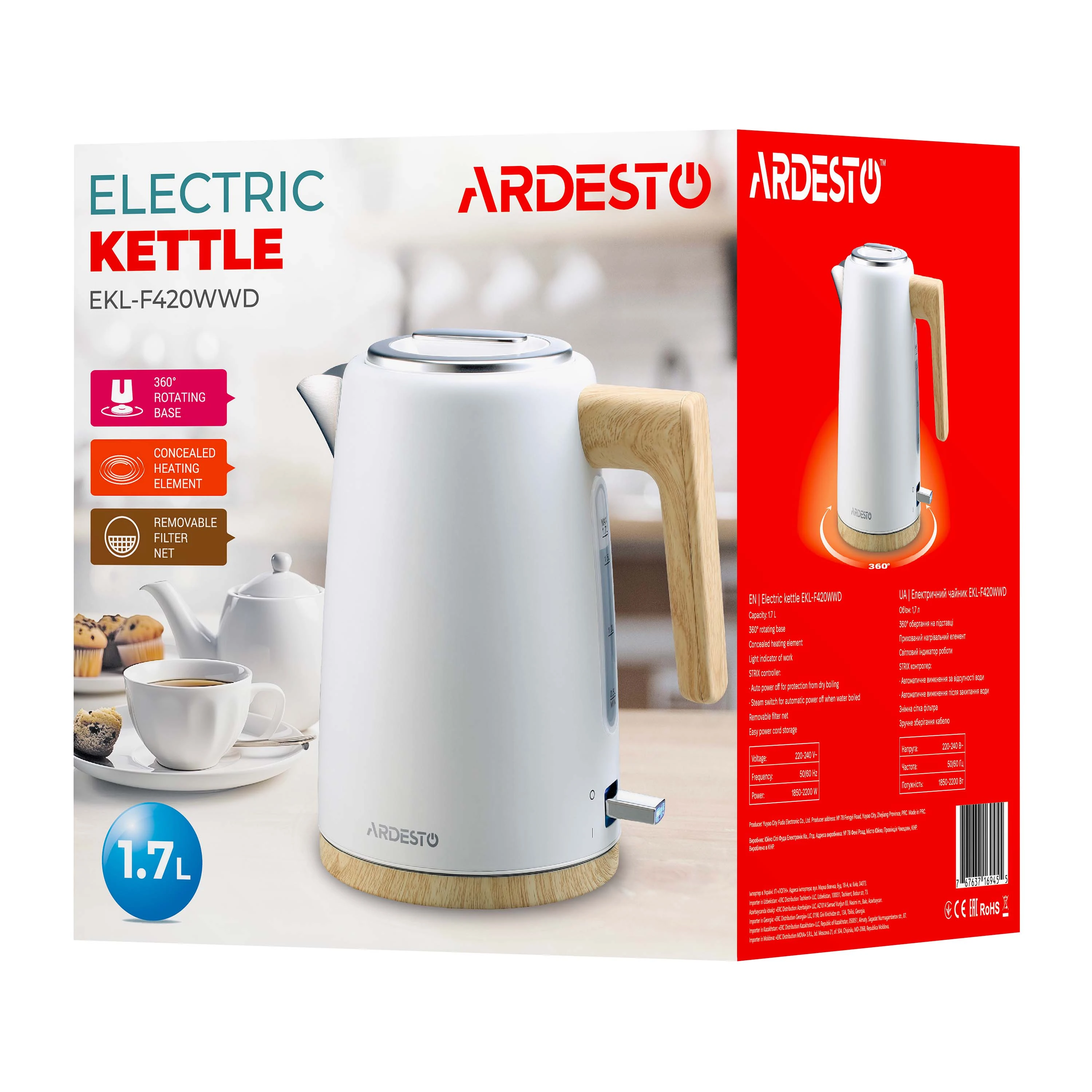 Електрочайник Ardesto EKL-F420WWD, 1.7л, метал, мат, Strix, білий