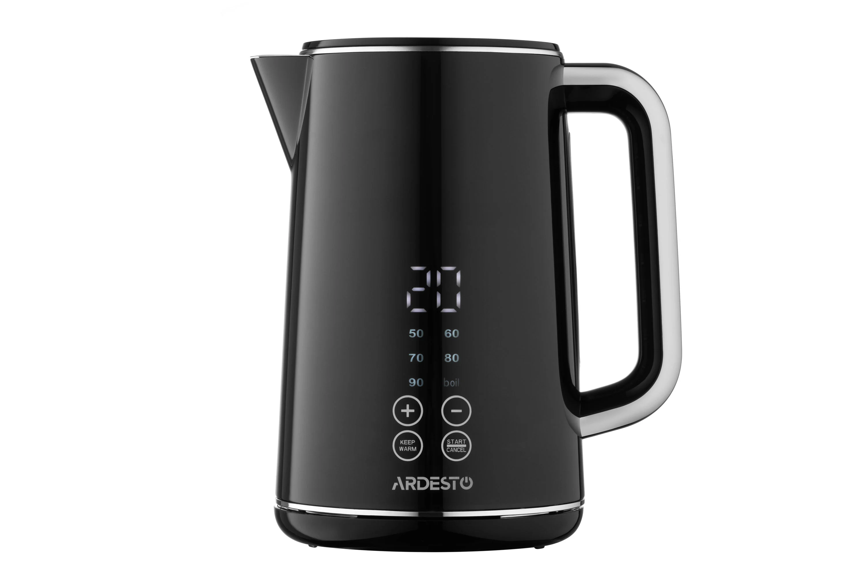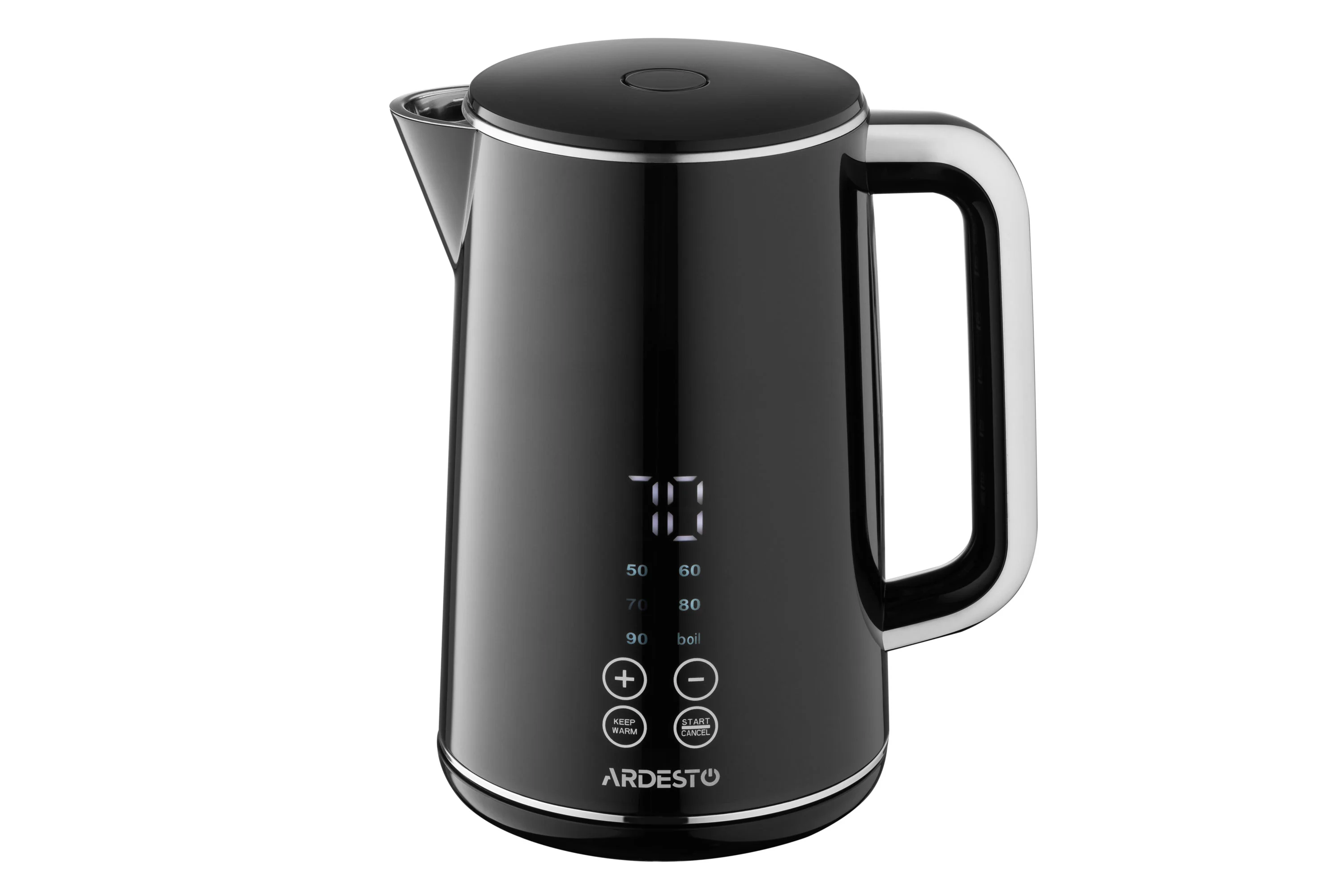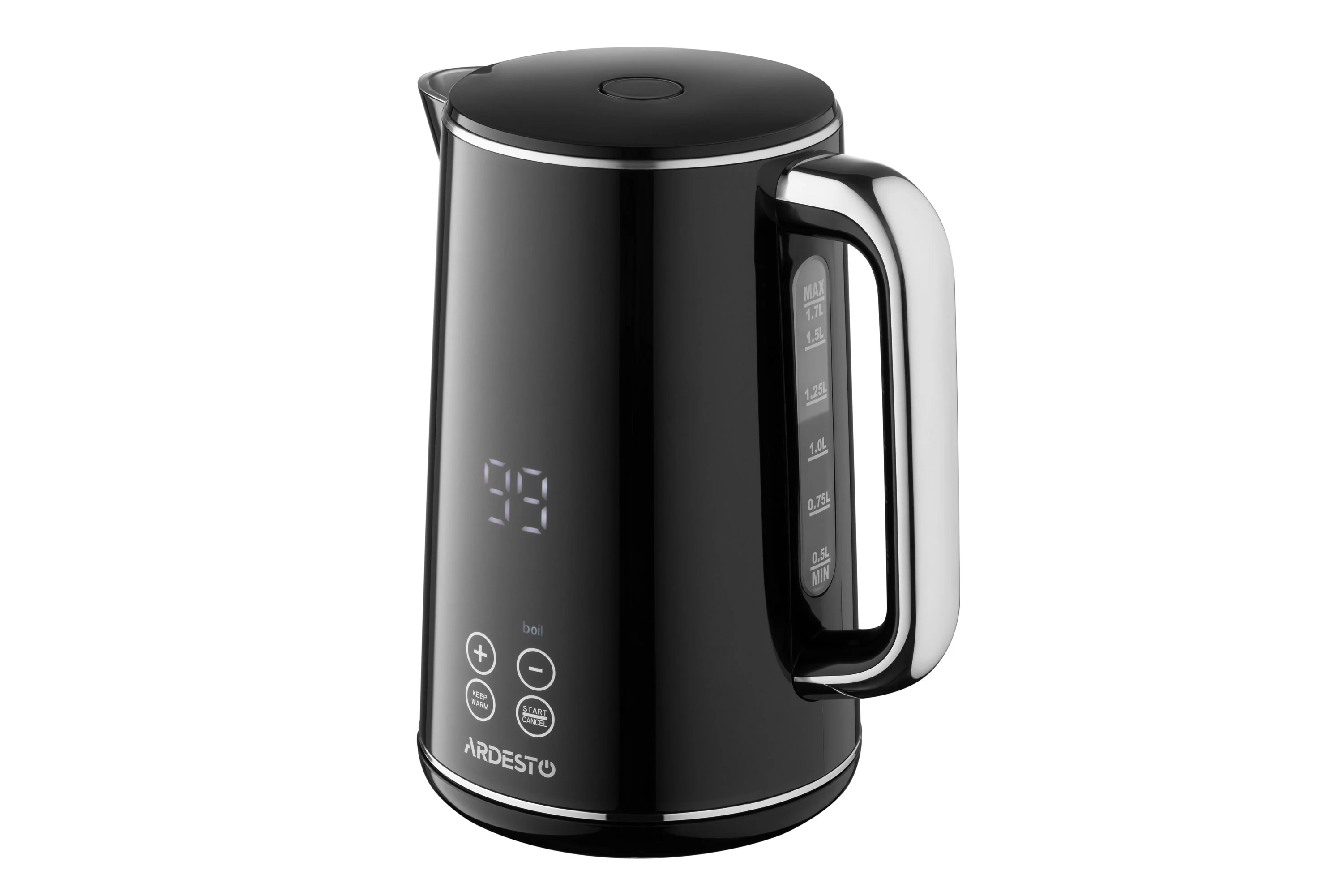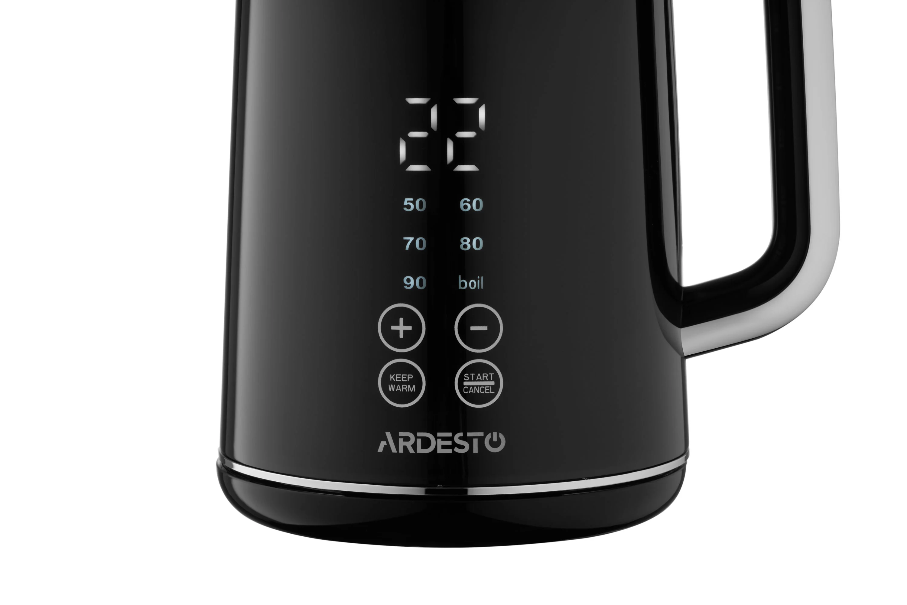 Електрочайник Ardesto Elegance, 1.7л, LED дисплей, подвійні стінки, Otter, чорний глянець