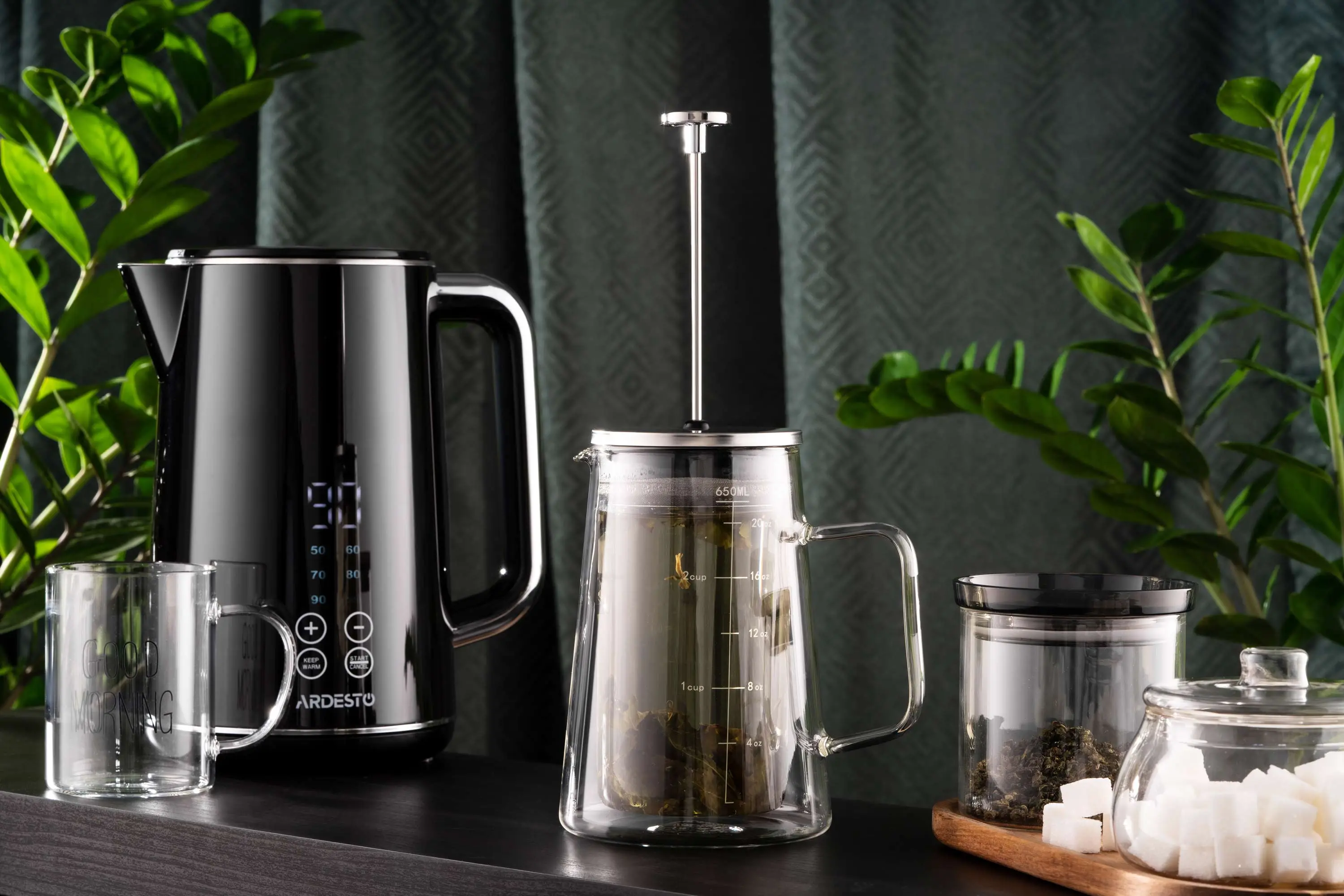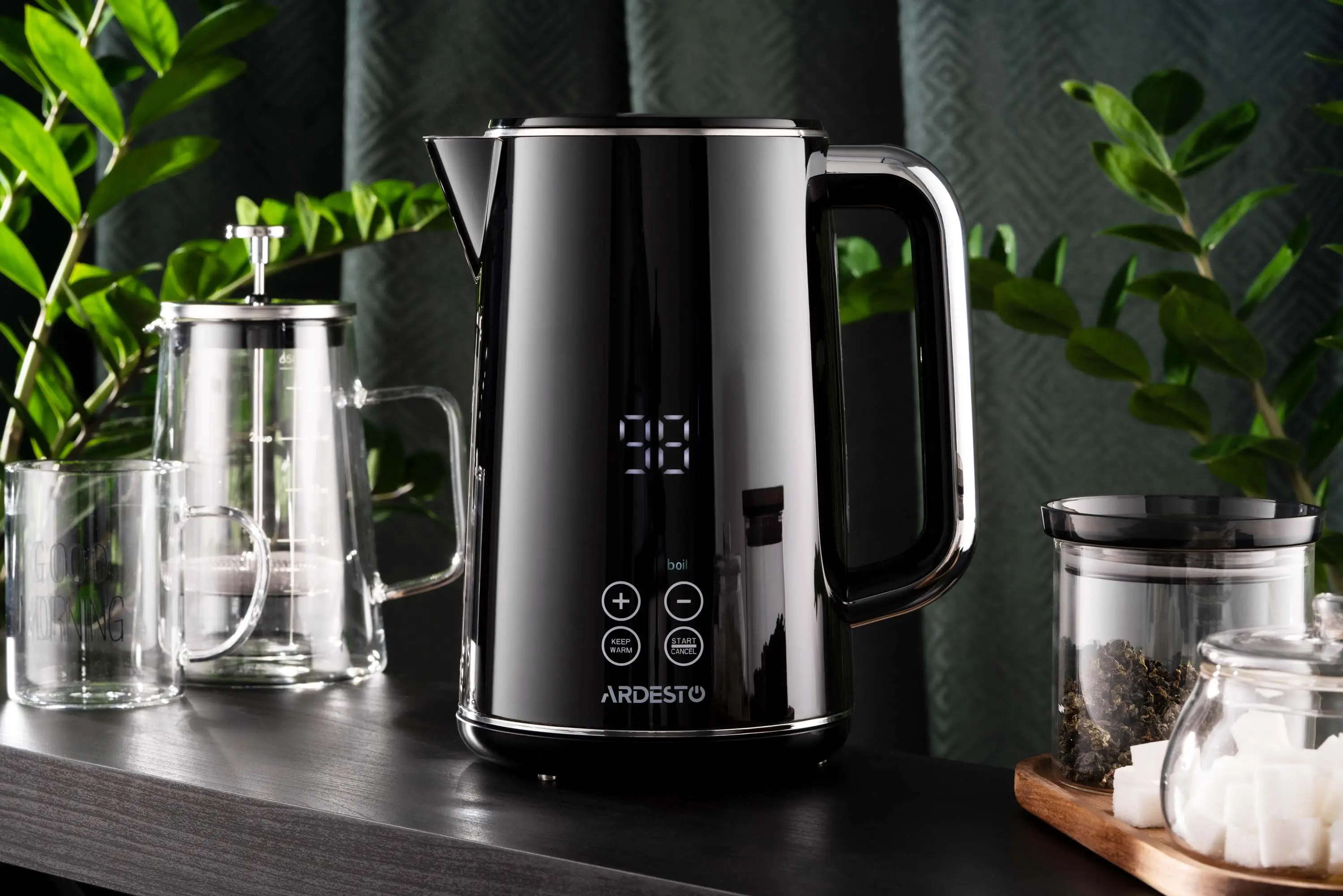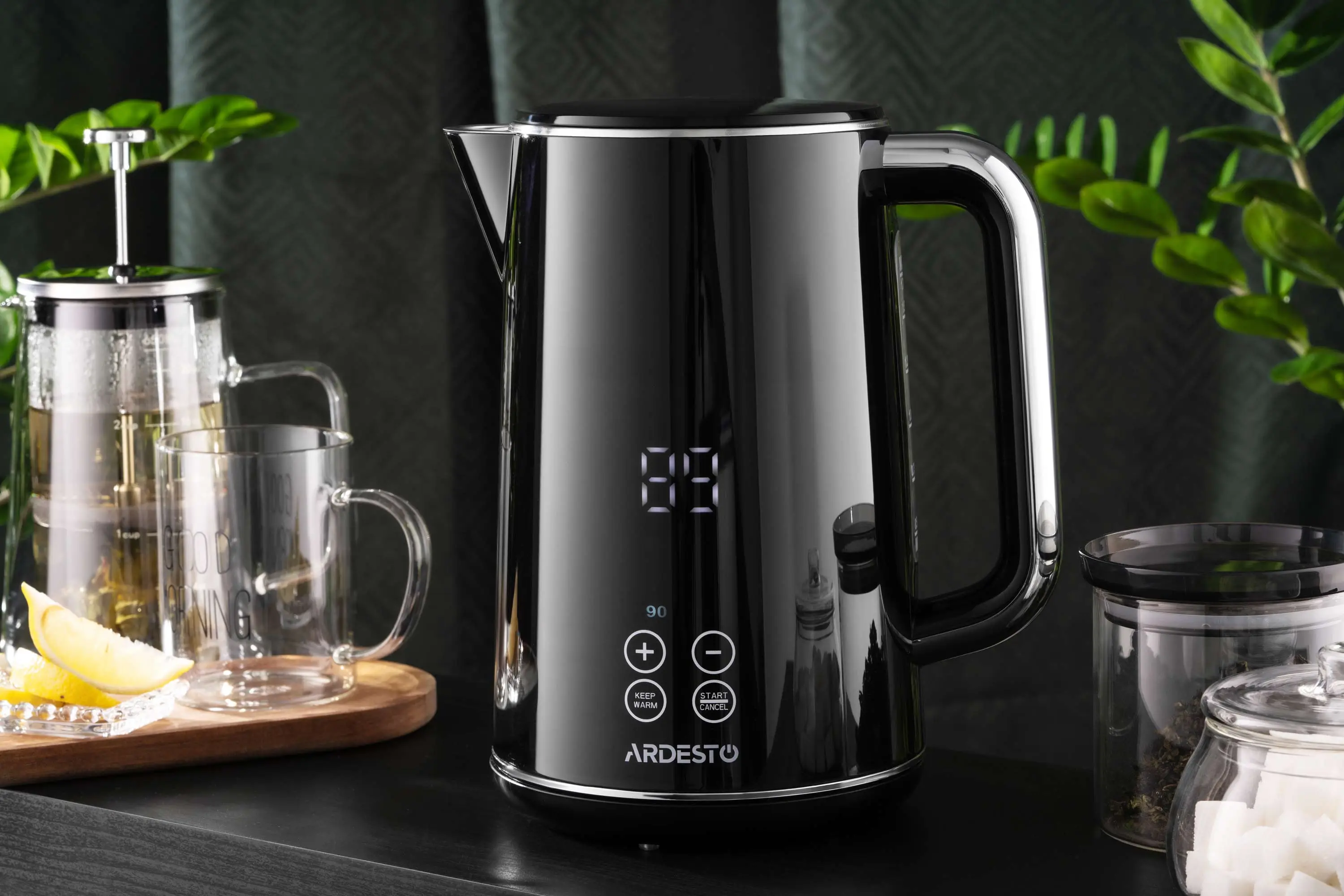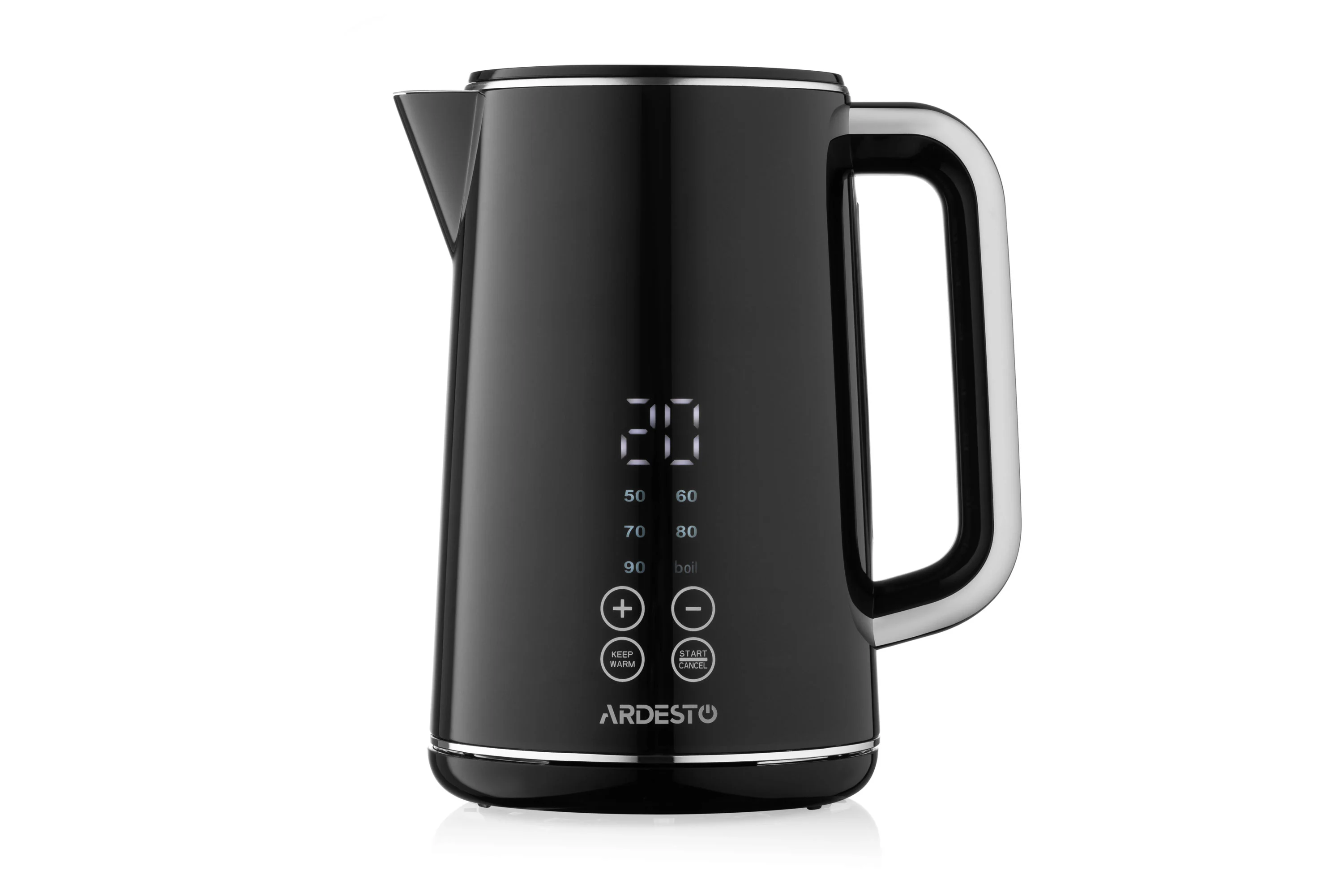 Електрочайник Ardesto Elegance, 1.7л, LED дисплей, подвійні стінки, Otter, чорний глянець