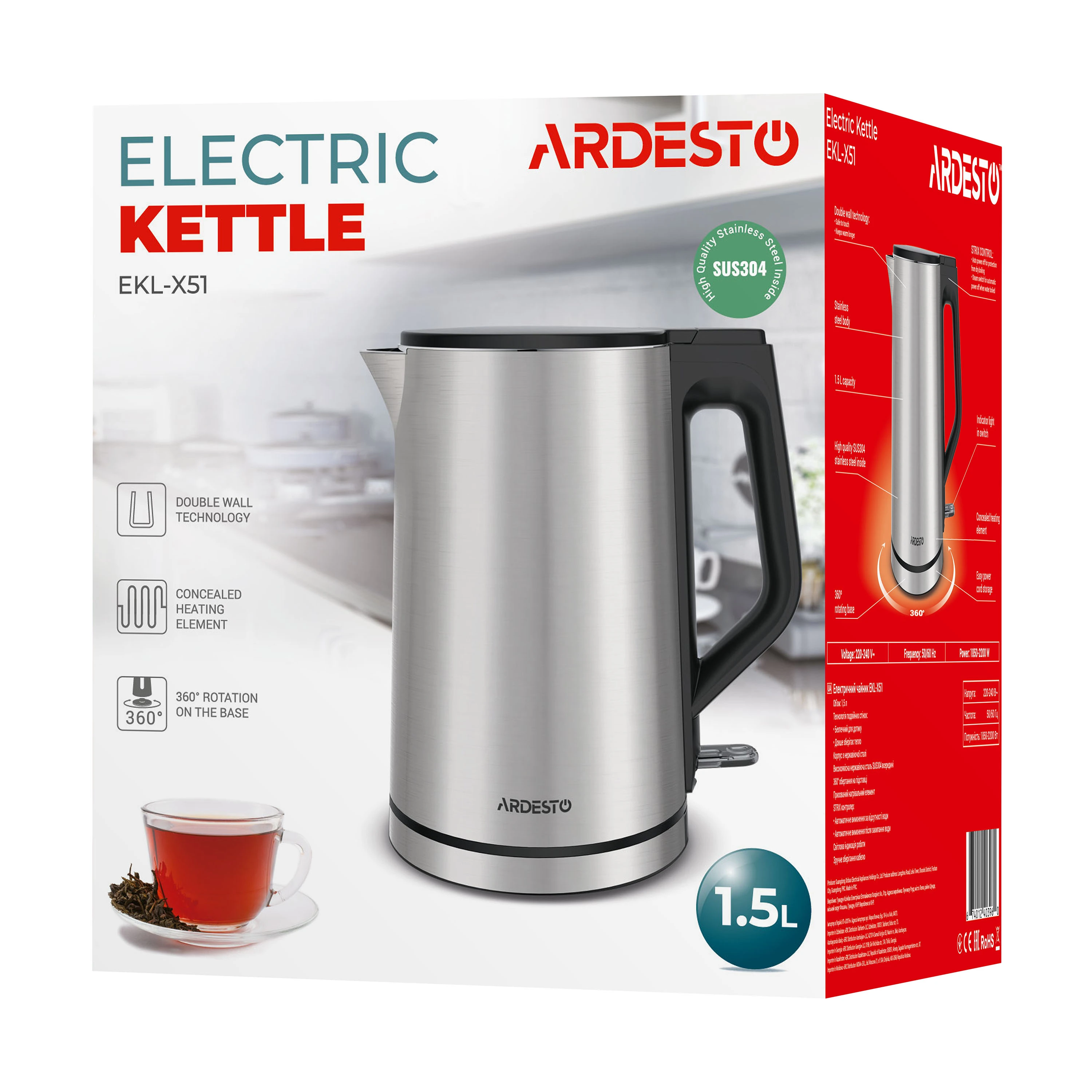 Електрочайник Ardesto Steel Collection 1.5л, подвійні стінки, сріблястий
