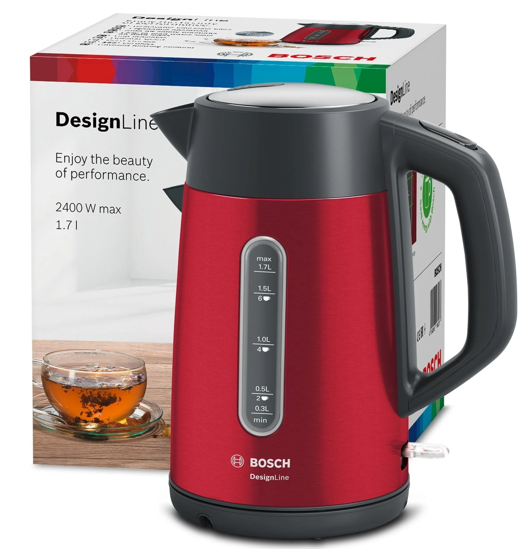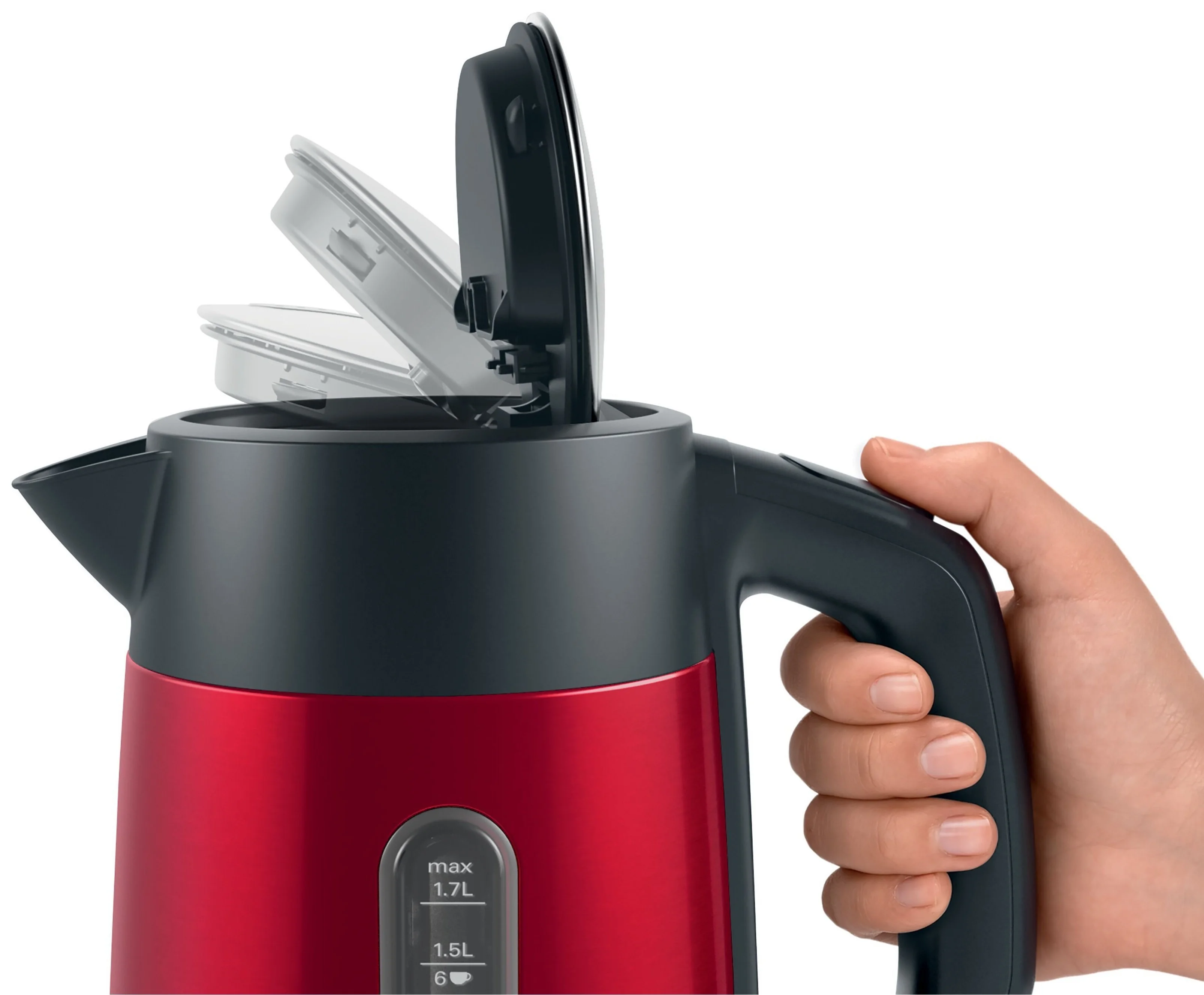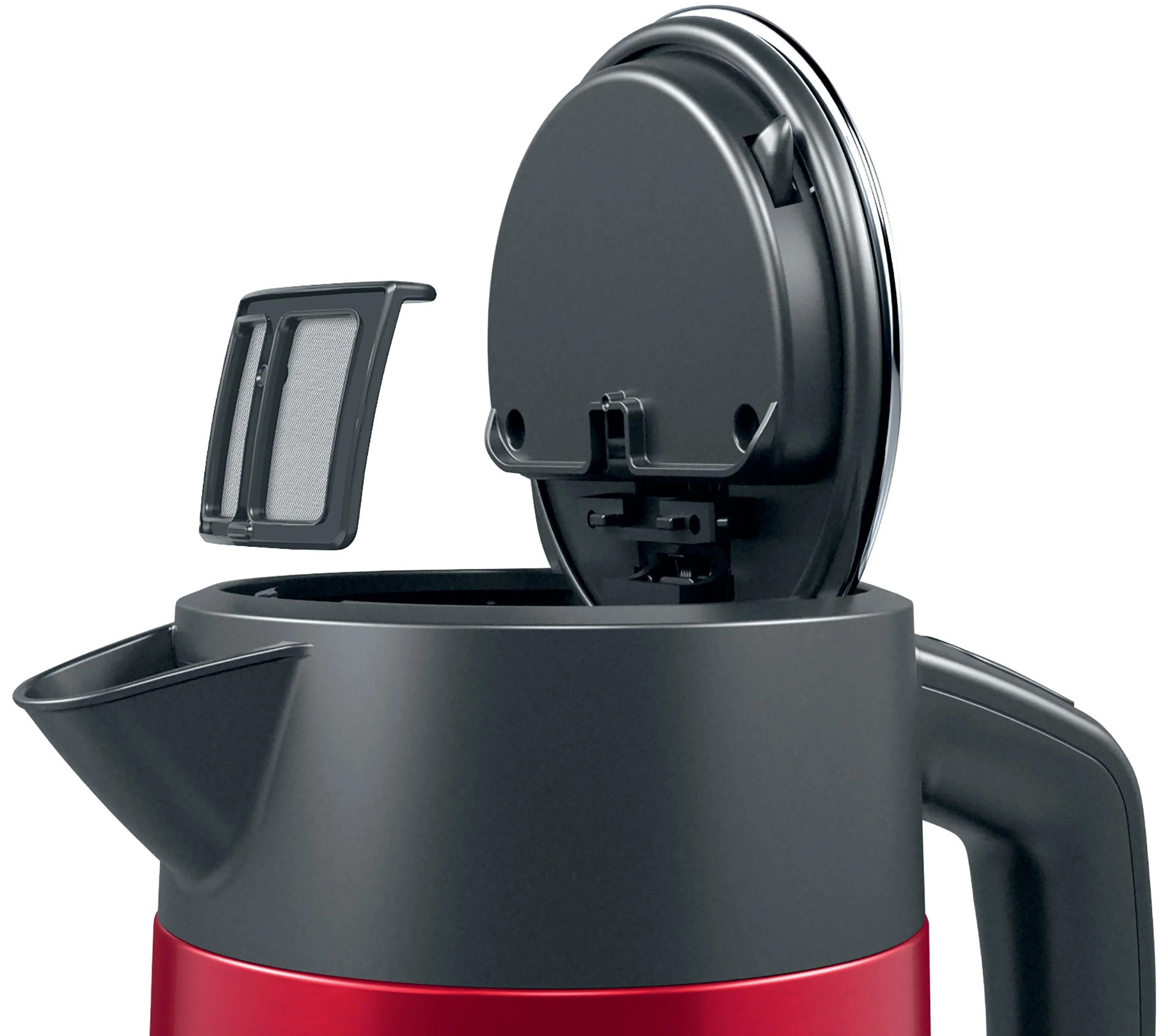 Електрочайник Bosch, 1.7л, метал, червоний з сірим