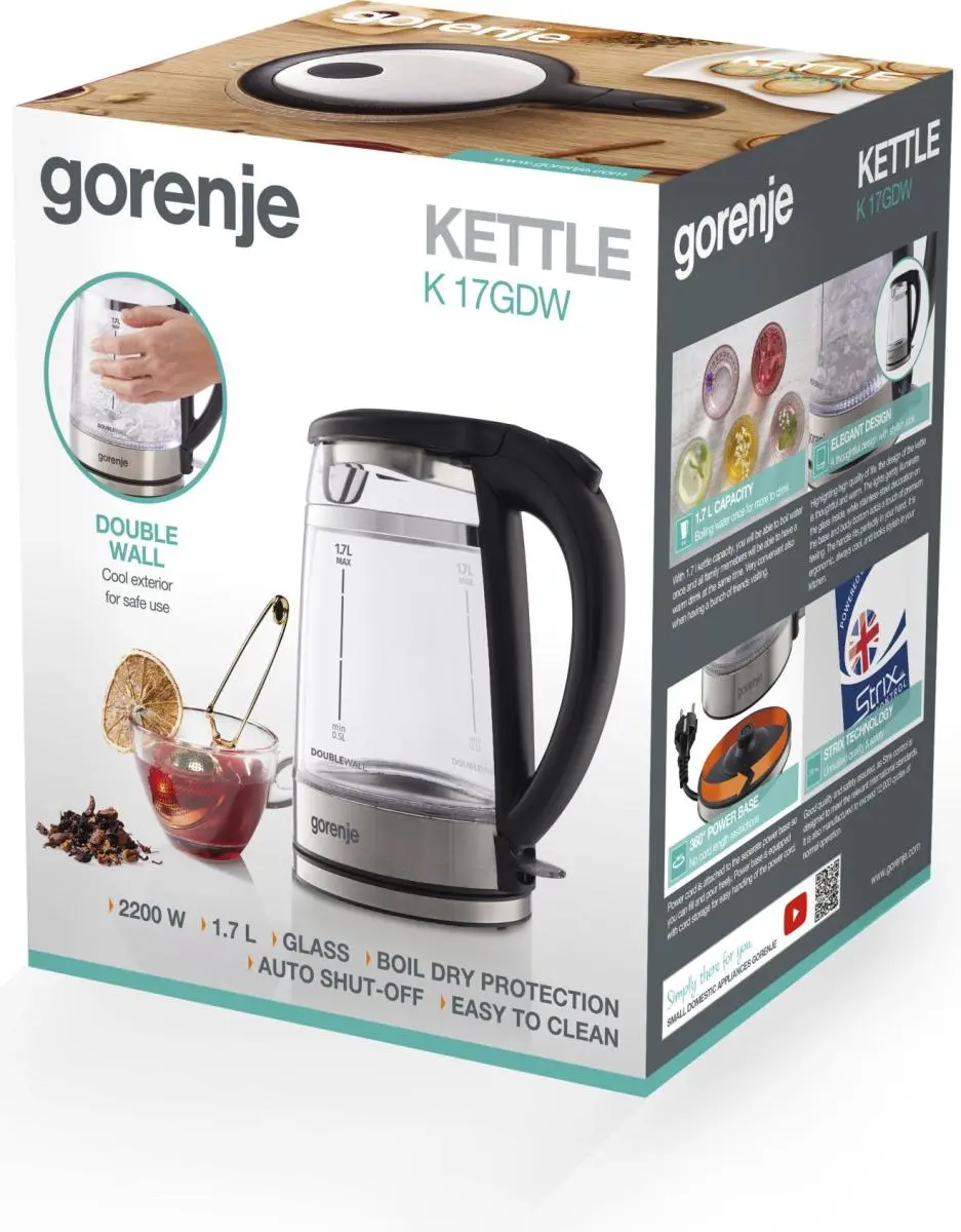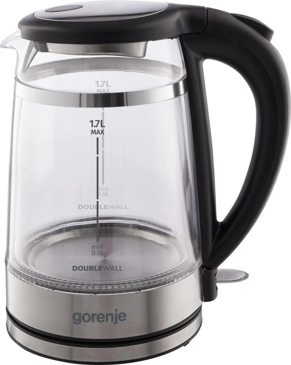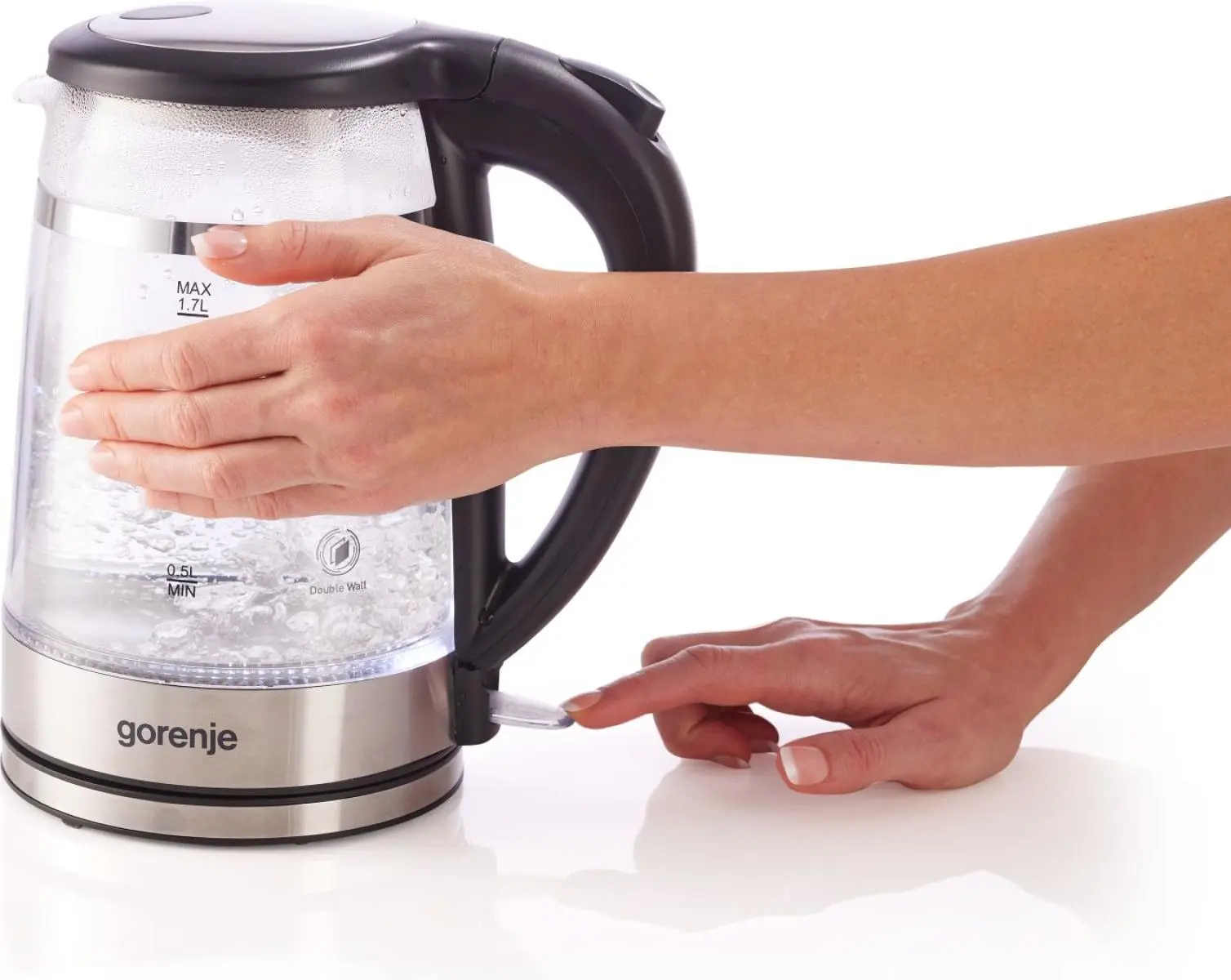 Електрочайник Gorenje 1.7л, 2,200 Вт, strix контроль, скло, чорний