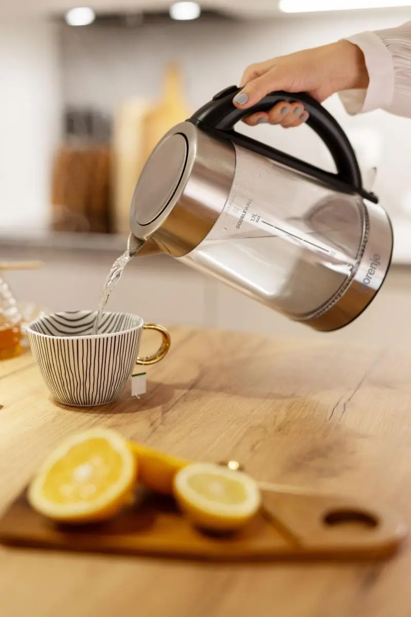 Електрочайник Gorenje K17GDWII об'ємом 1,7 літра та потужністю 2200 Вт забезпечує швидке кип'ятіння води. Він оснащений високоякісним контролером Strix для надійної та безпечної роботи. Корпус чайника виконаний із міцного скла з елементами з нержавіючої сталі, що надає йому стильного та сучасного вигляду. Прозорий дизайн дозволяє легко контролювати рівень води, а поєднання скла та нержавіючої сталі забезпечує довговічність і естетичність.