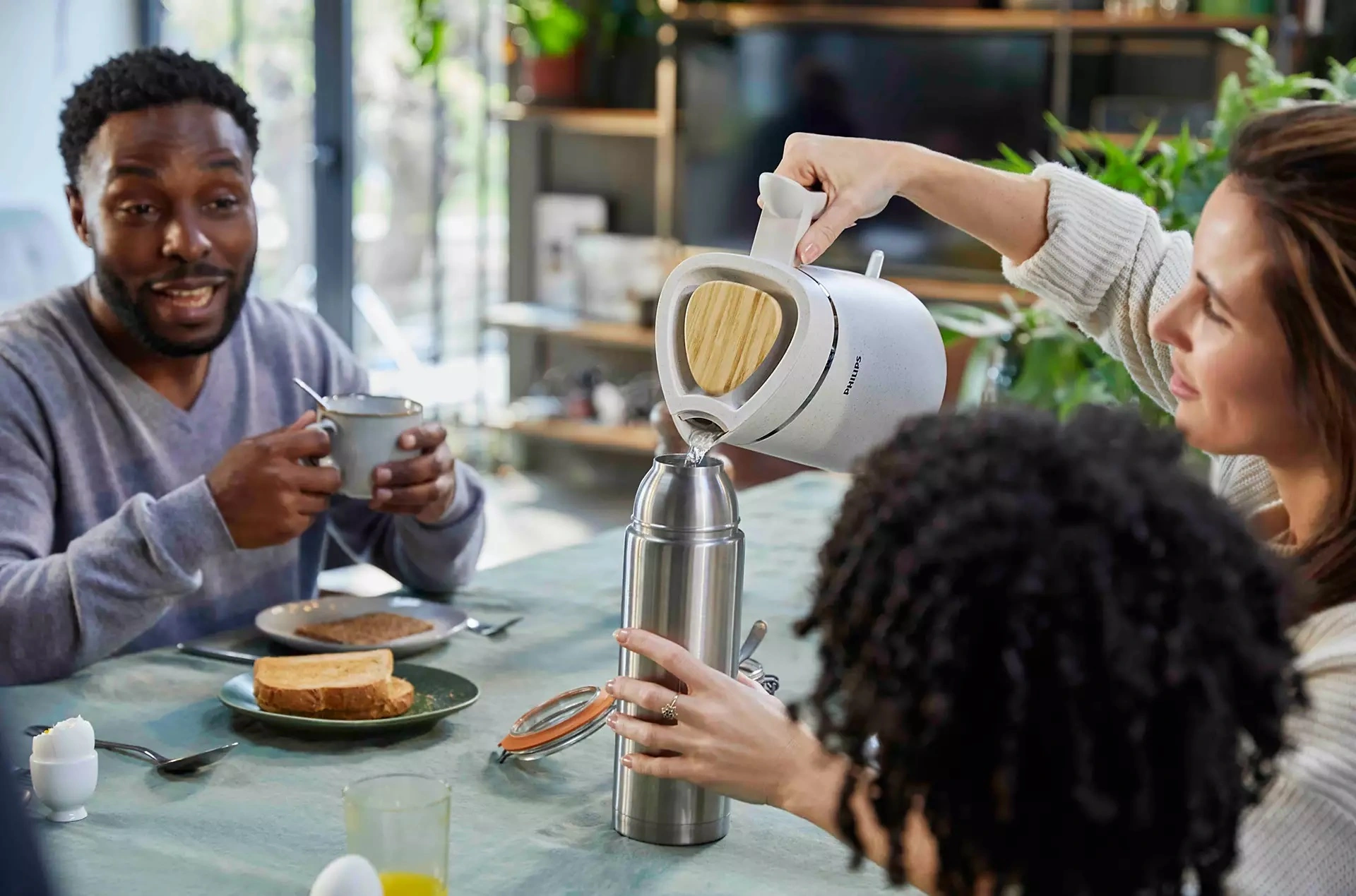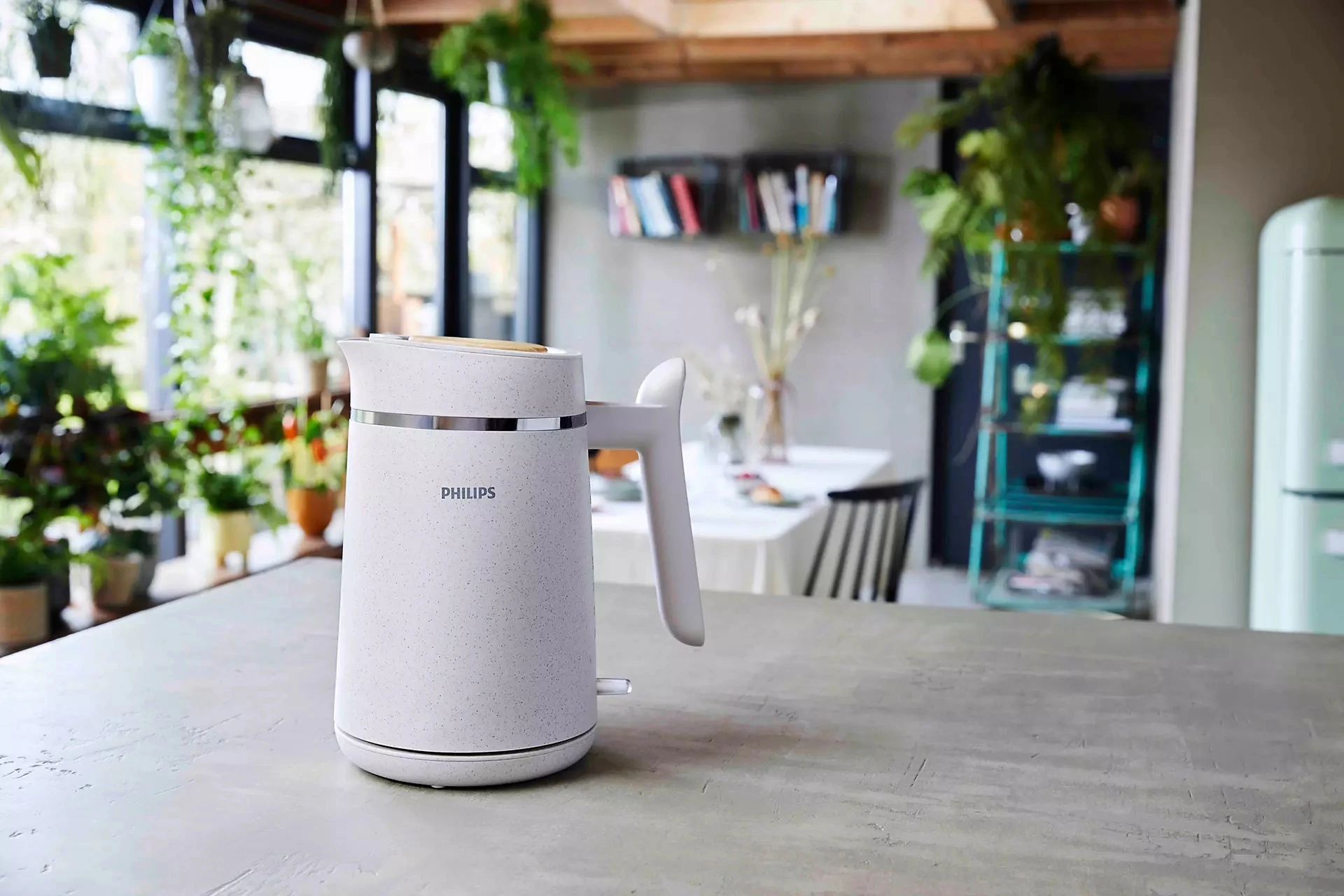 Сніданок став ще кращим. Готуйте улюблений напій для пробудження щоранку із цим елегантним та бездоганно працюючим чайником. Він екологічно безпечний, адже виготовлений зі 100%-го пластику на біологічній основі, що дозволить вам зменшити викиди CO2 на 25%* і наблизитися до більш екологічного майбутнього.