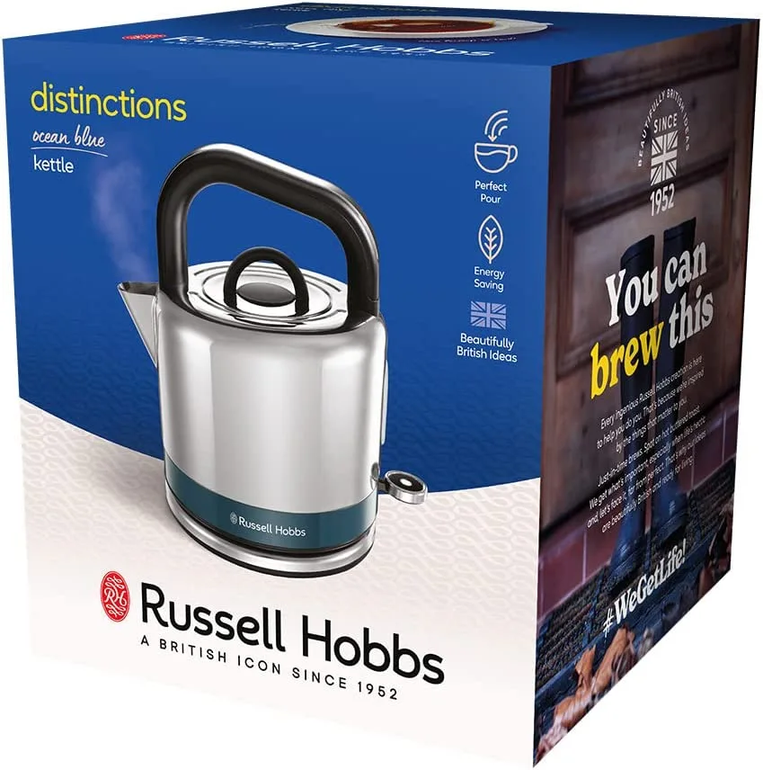 Електрочайник Russell Hobbs Distinctions Black 1.5л, Strix, метал, сріблясто-синій