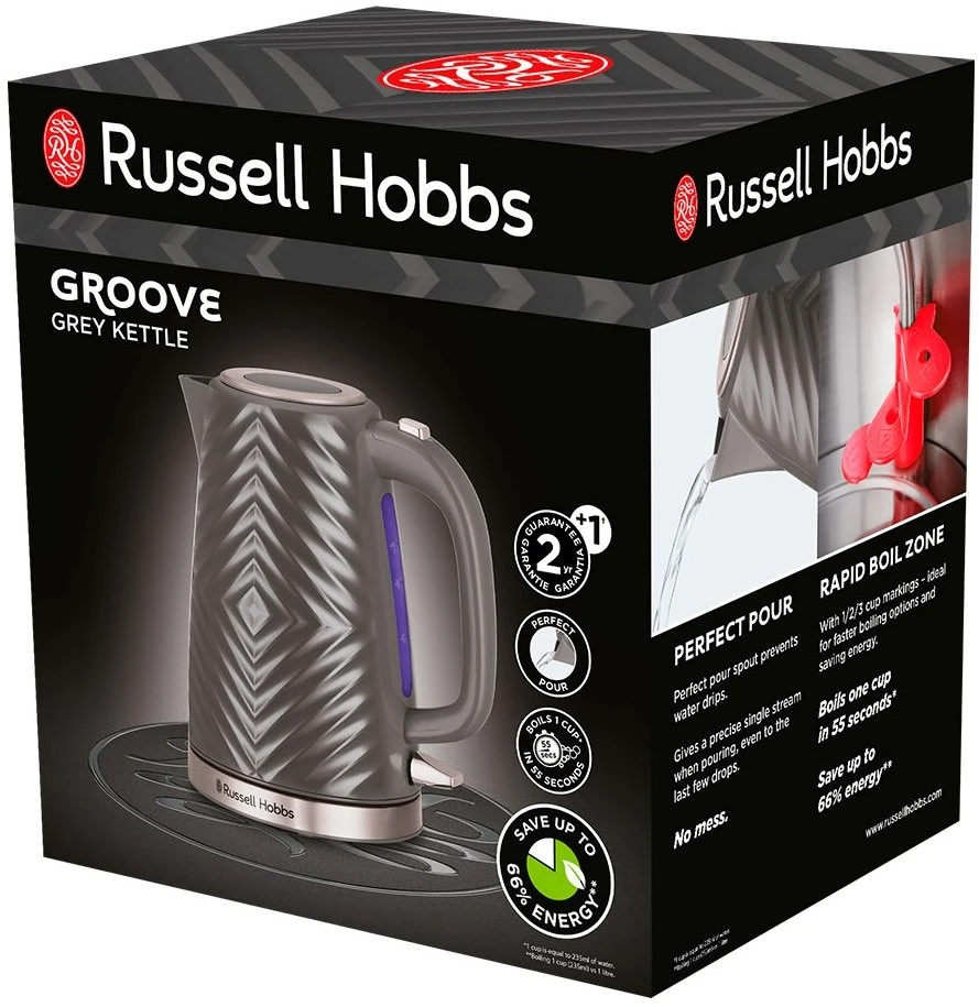 Електрочайник Russell Hobbs Groove Grey 1.7л, Strix, пластик, сірий