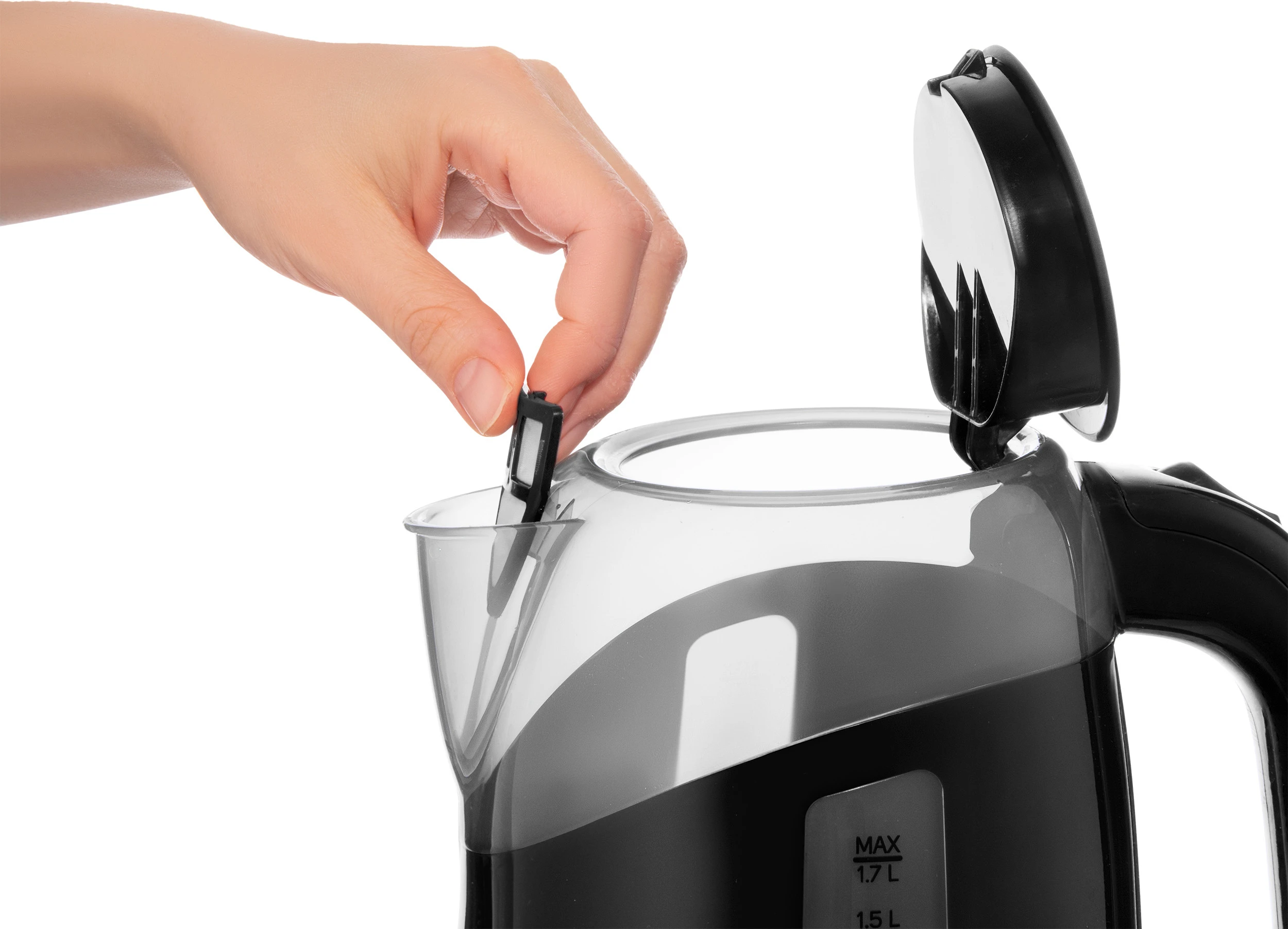 Електричний чайник об'ємом 1.7 л та потужністю 2200 Вт. Центральний конектор STRIX 360° із потрійною системою безпеки. Відсутність парової трубки для легкого чищення. Знімний фільтр для бруду та накипу.