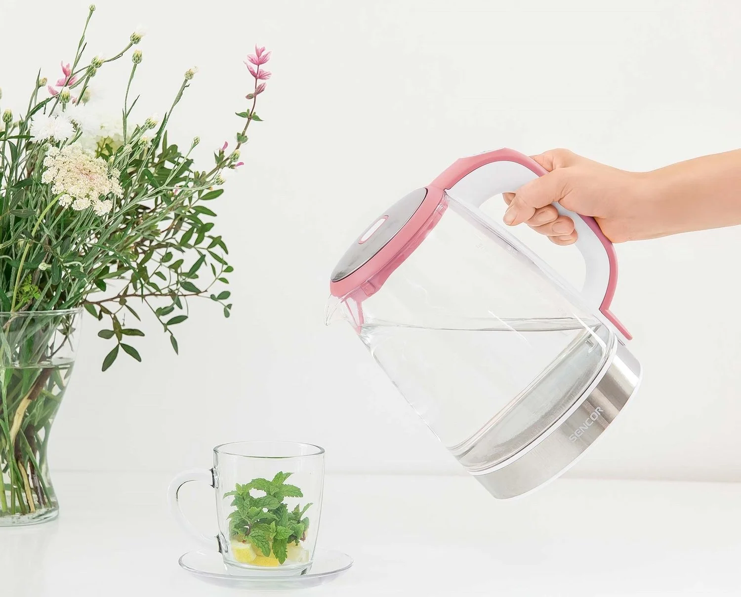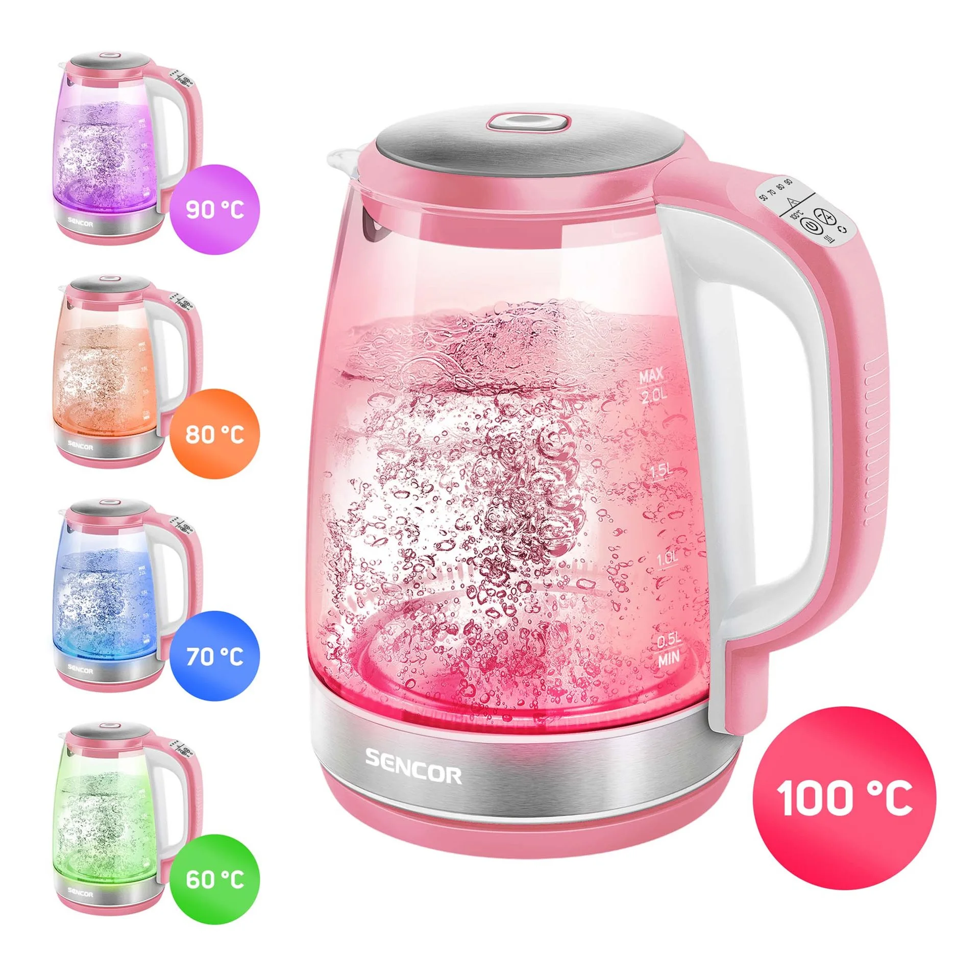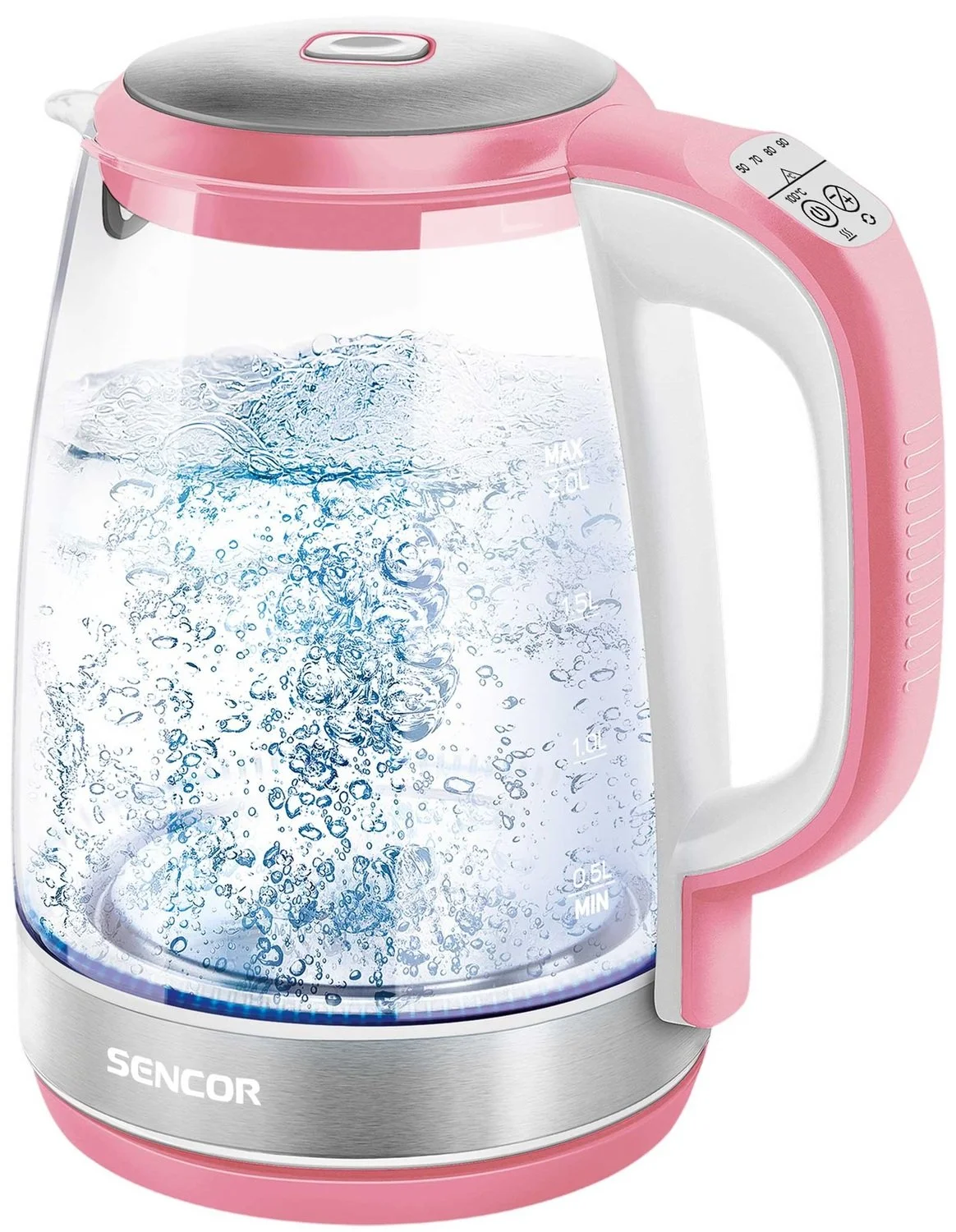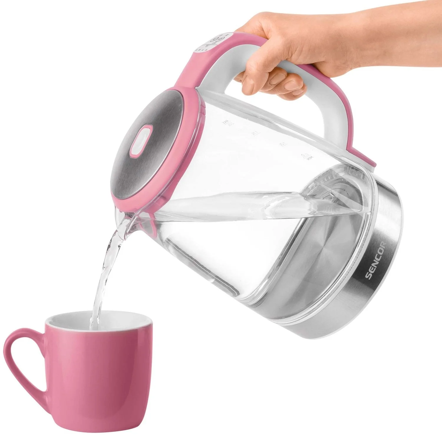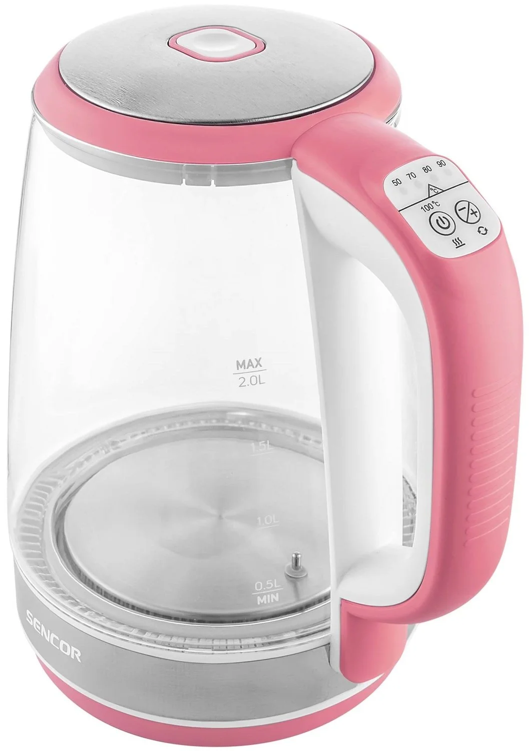Електрочайник Sencor 2л, Strix, скло, 5 темп.реж, малиновий