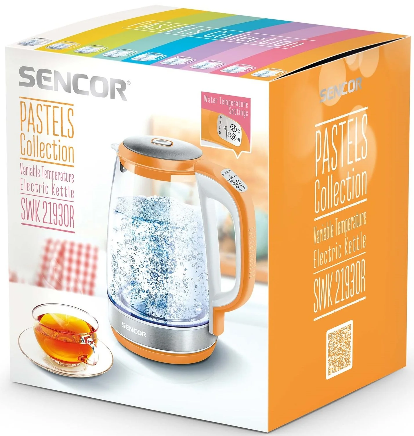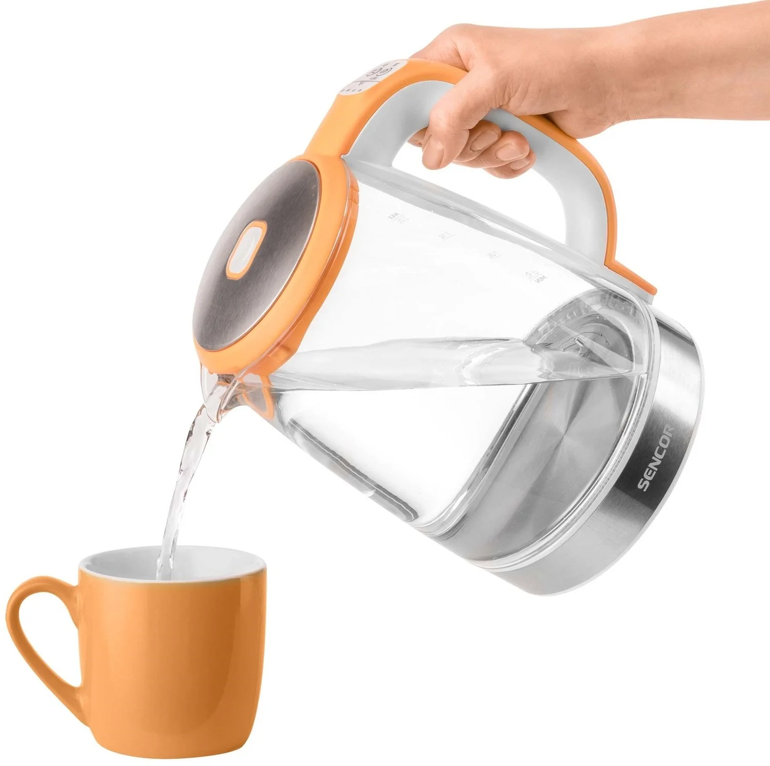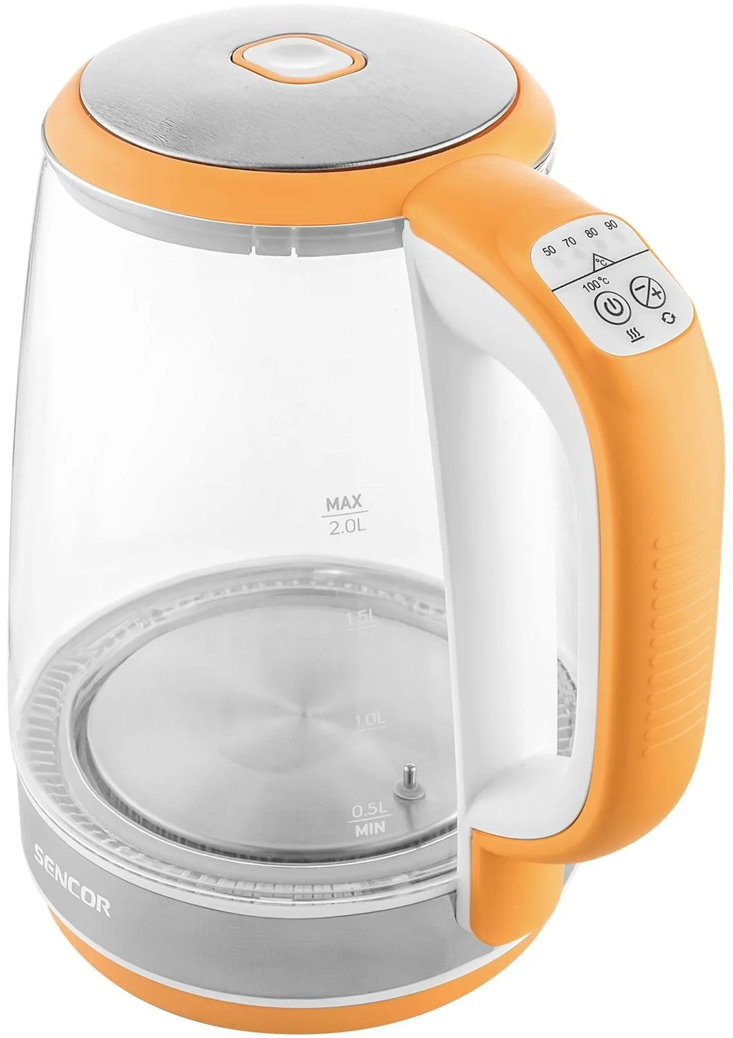 Електрочайник Sencor 2л, Strix, скло, 5 темп.реж, помаранчевий