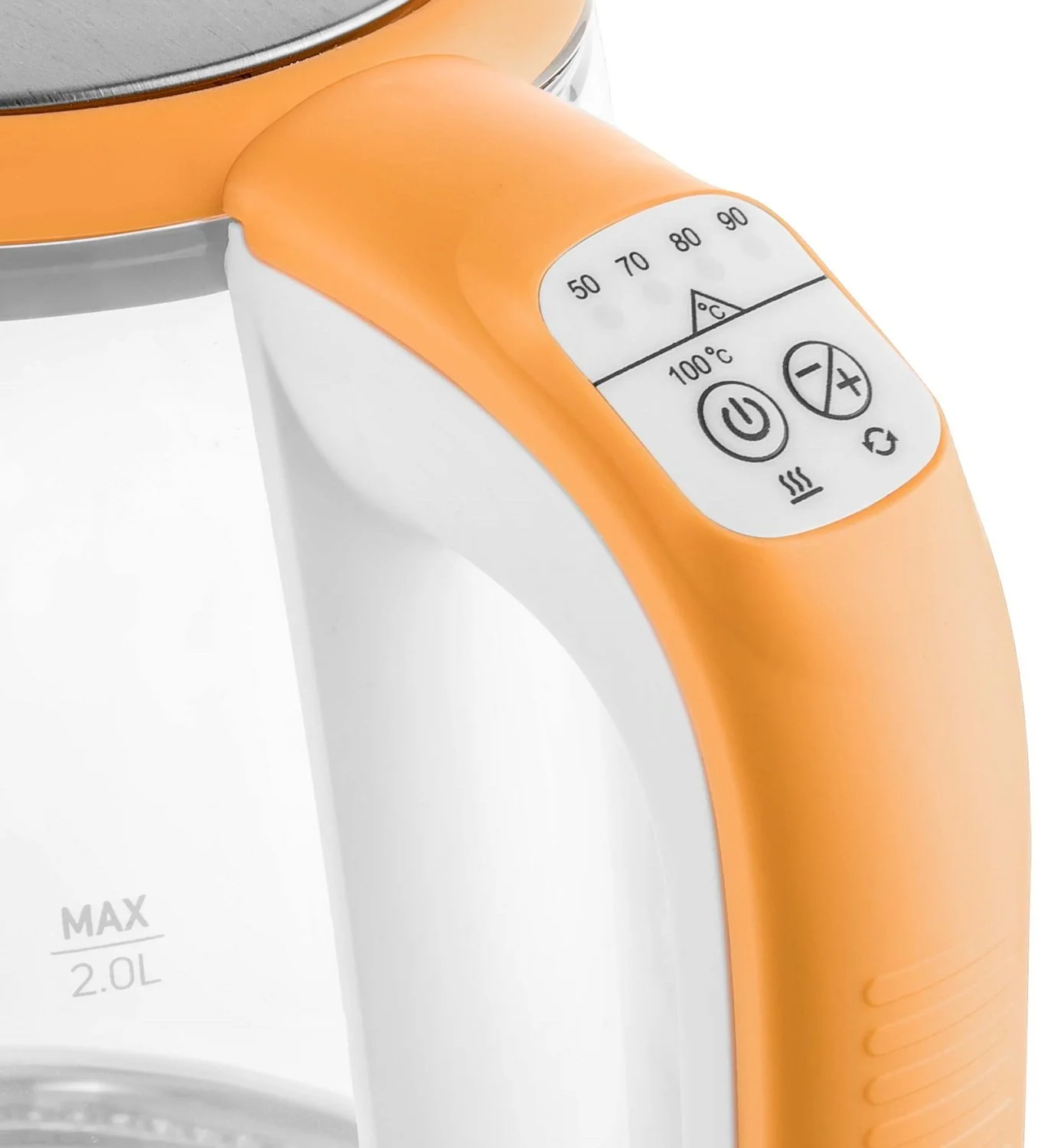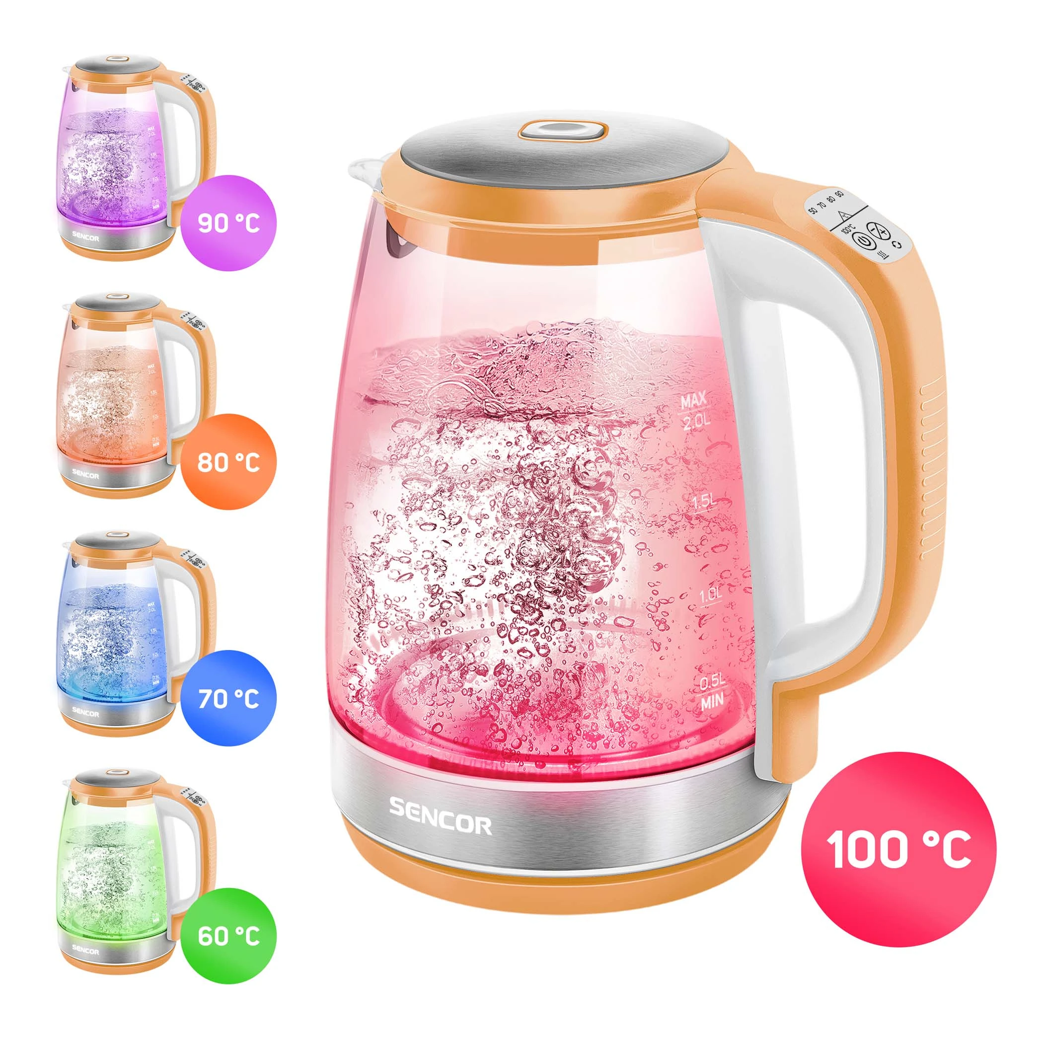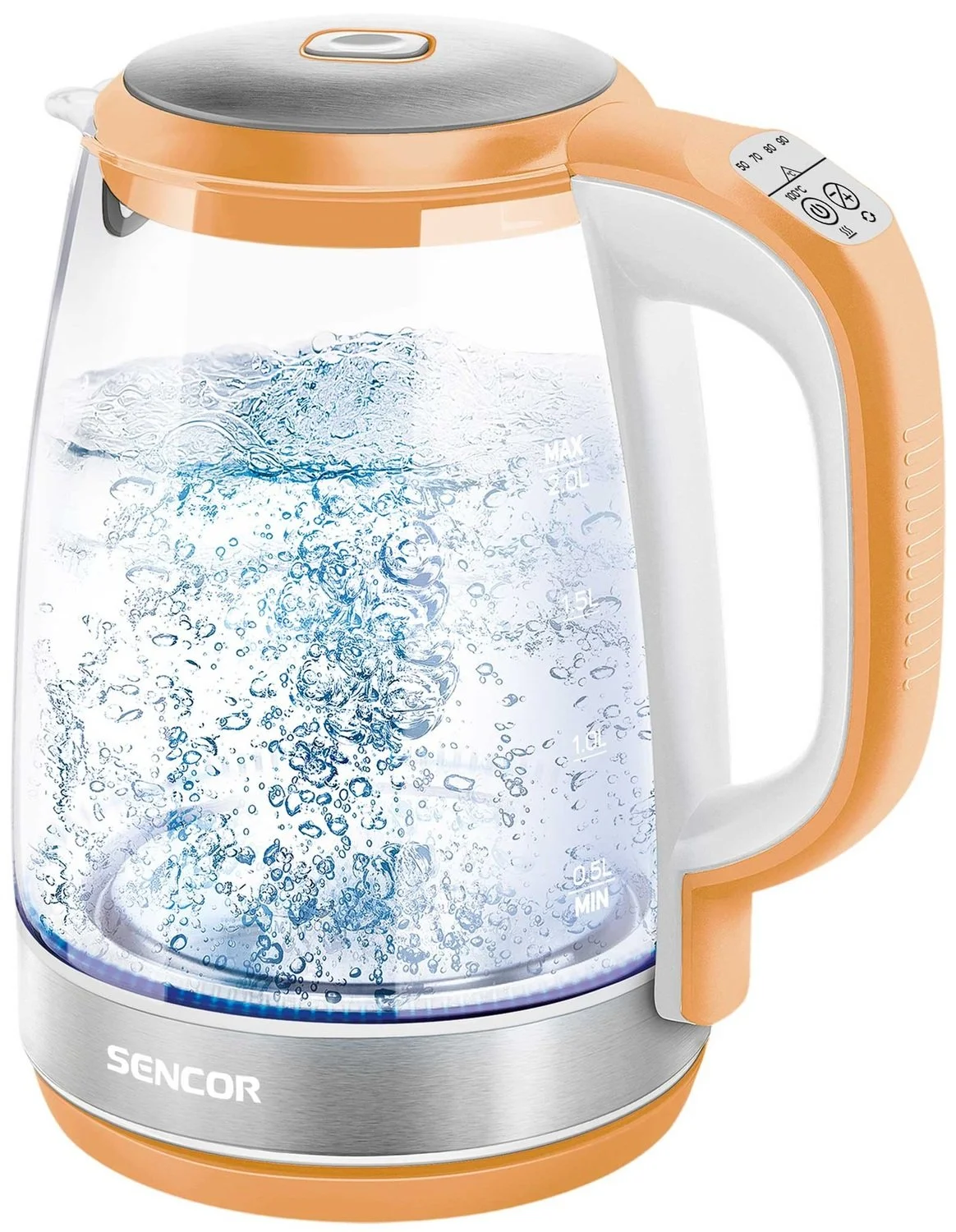 Електрочайник Sencor 2л, Strix, скло, 5 темп.реж, помаранчевий