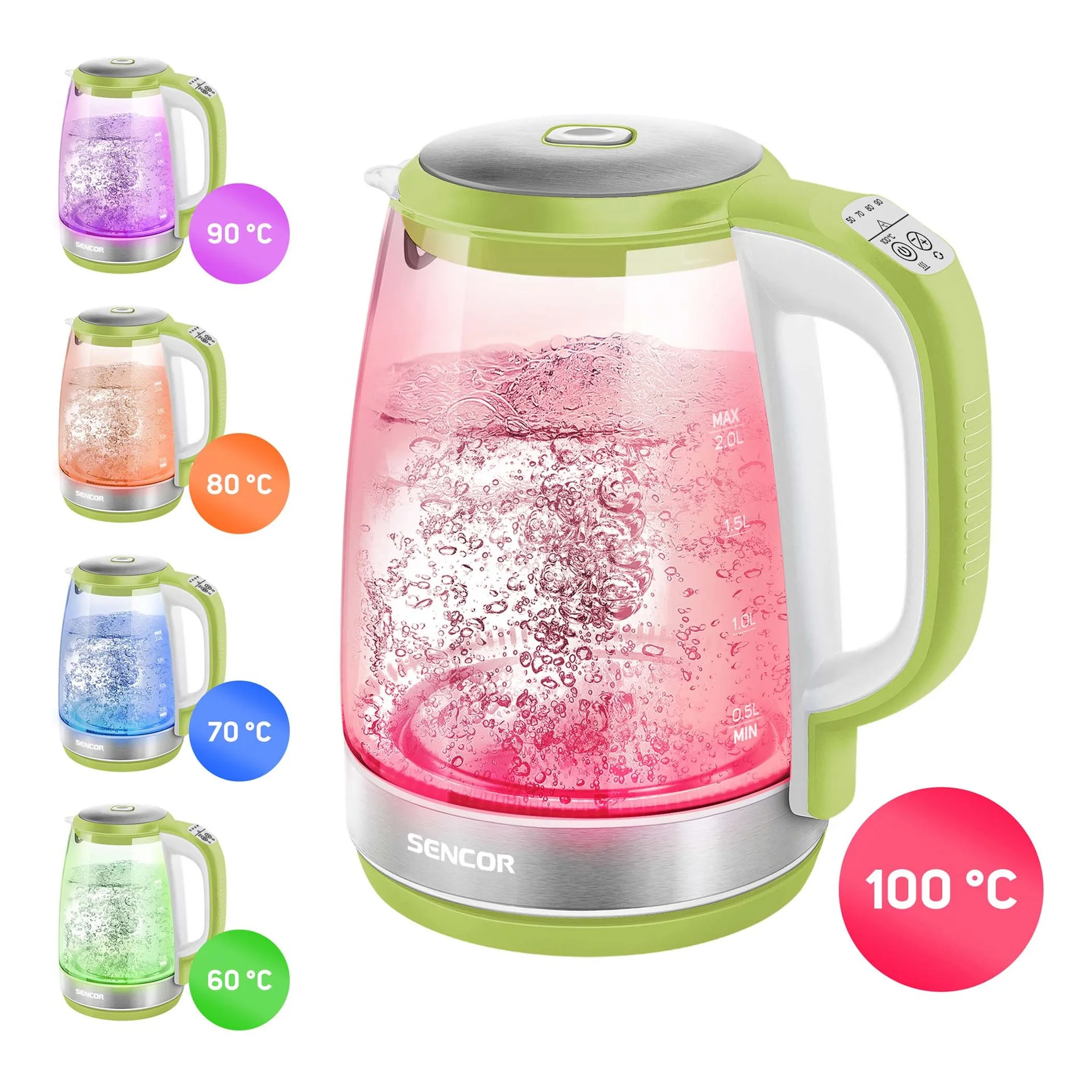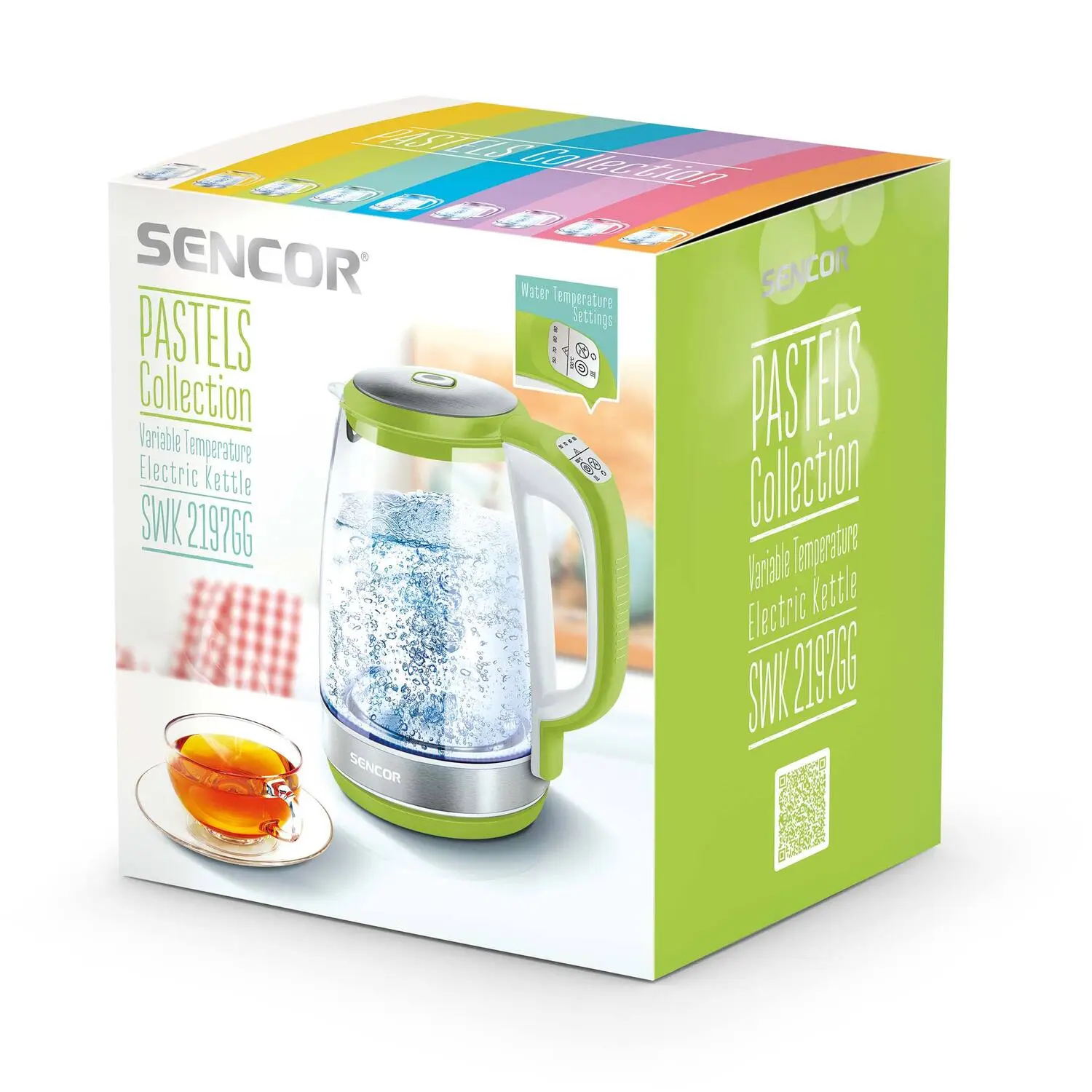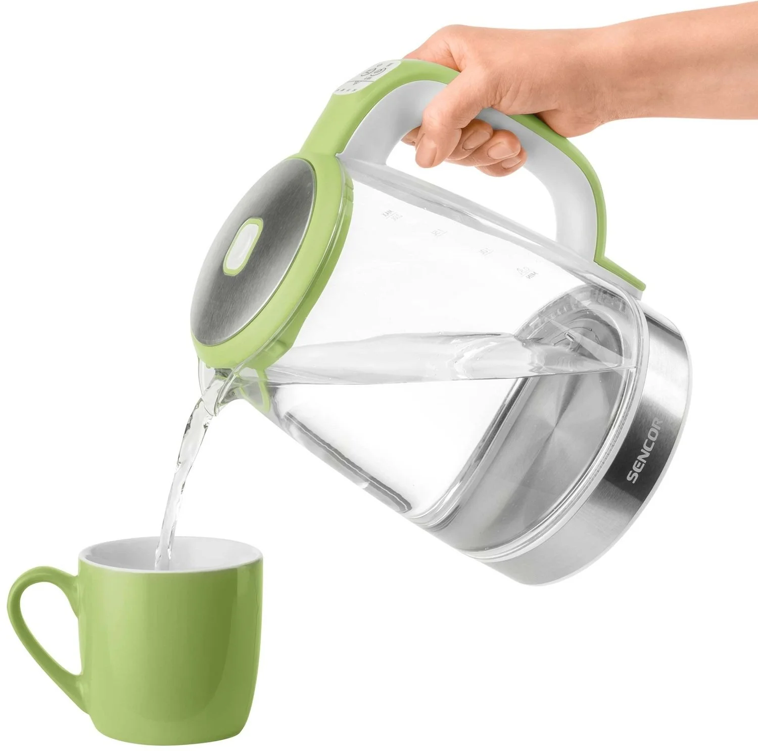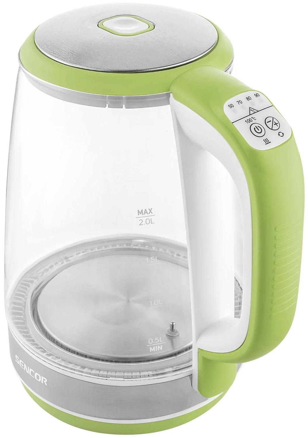 Електрочайник Sencor 2л, Strix, скло, 5 темп.реж, салатовий