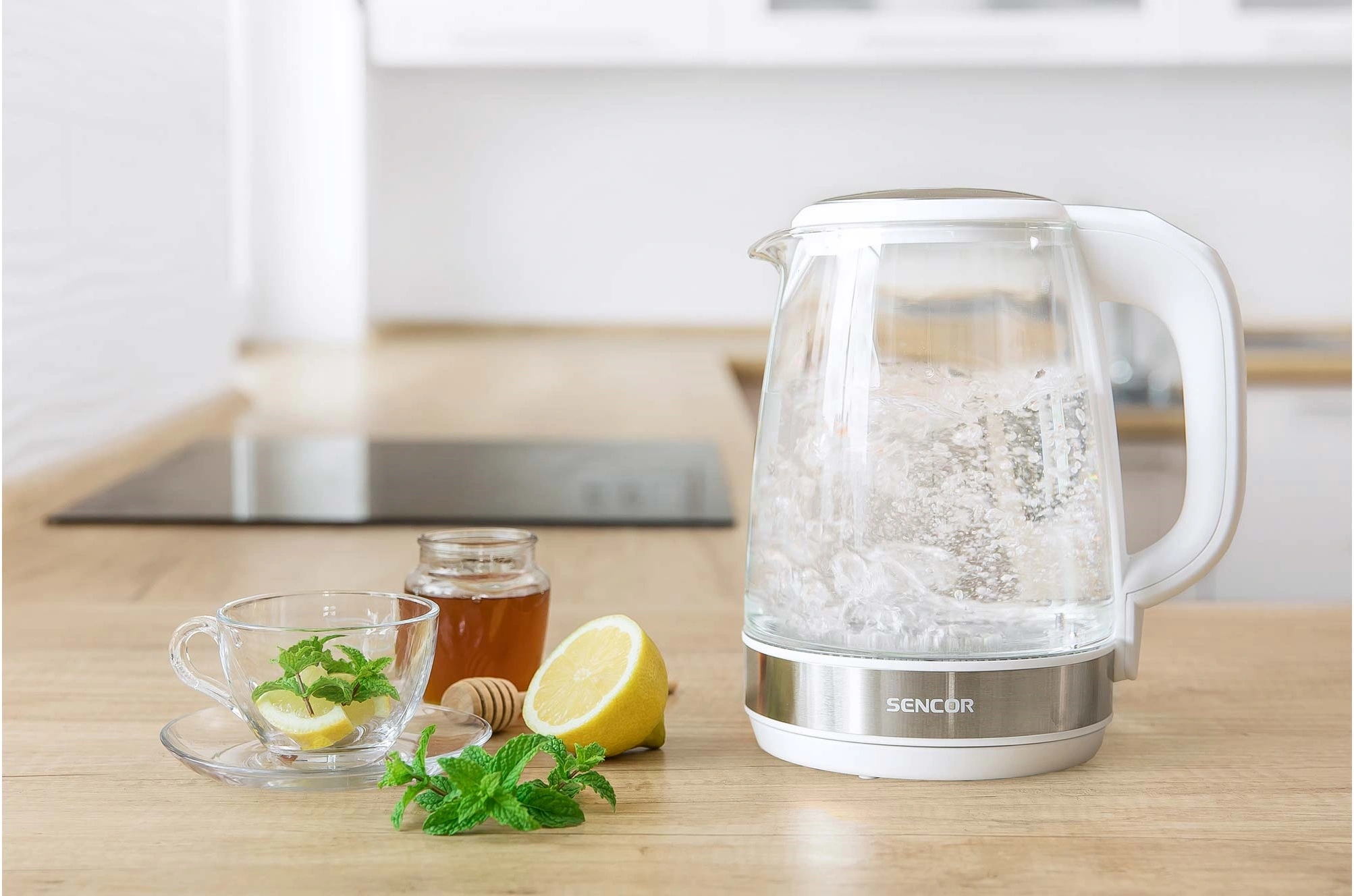 Електричний чайник з регулюванням температури об'ємом 2 л та потужністю 2200 Вт. Підтримує температуру 30 хвилин. Внутрішнє світлодіодне підсвічування зі змінним кольоровим підсвічуванням. Потрійна система безпеки.