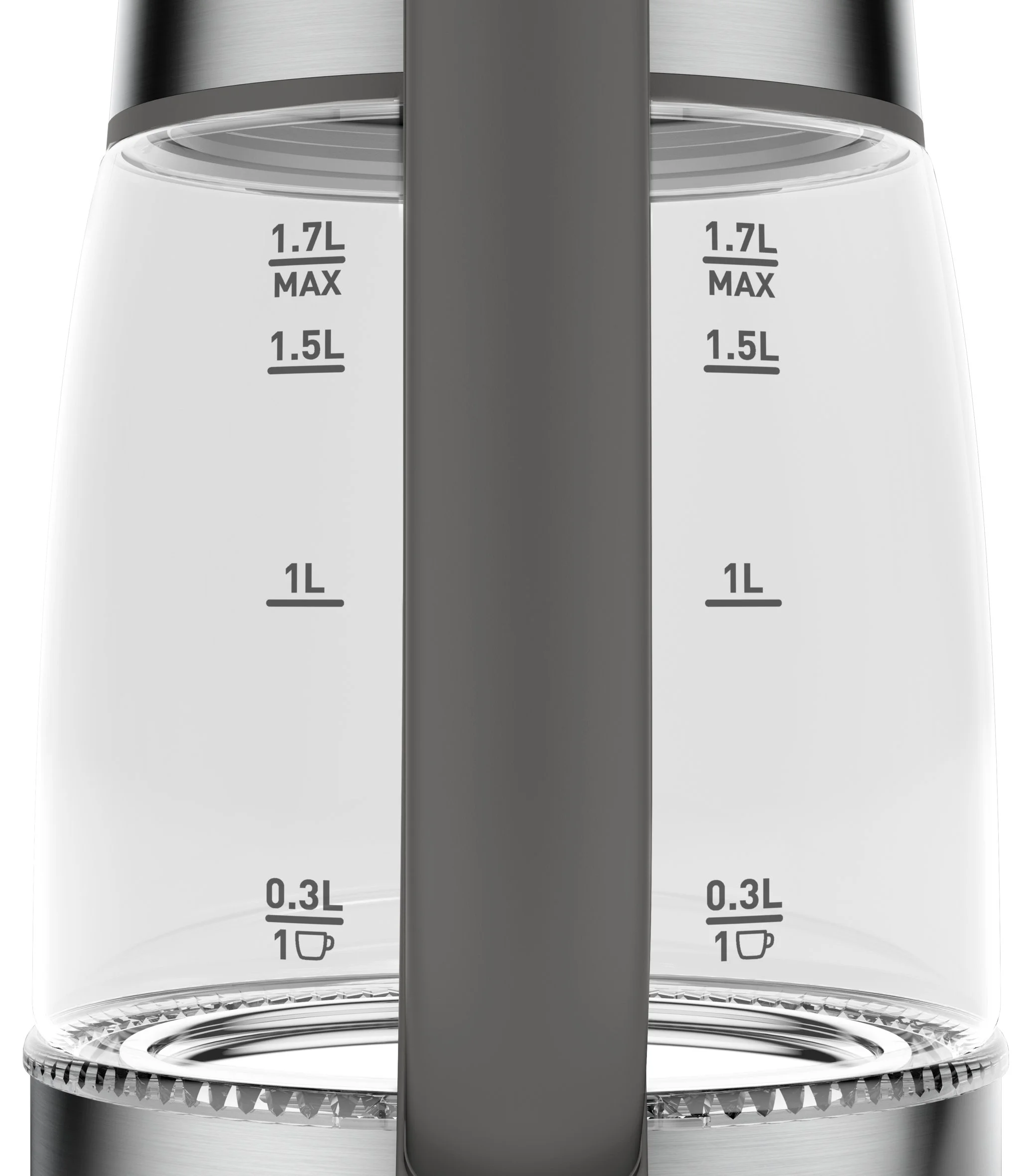 Електрочайник Tefal Glass Kettle 1.7л, скло, сріблясто-сірий