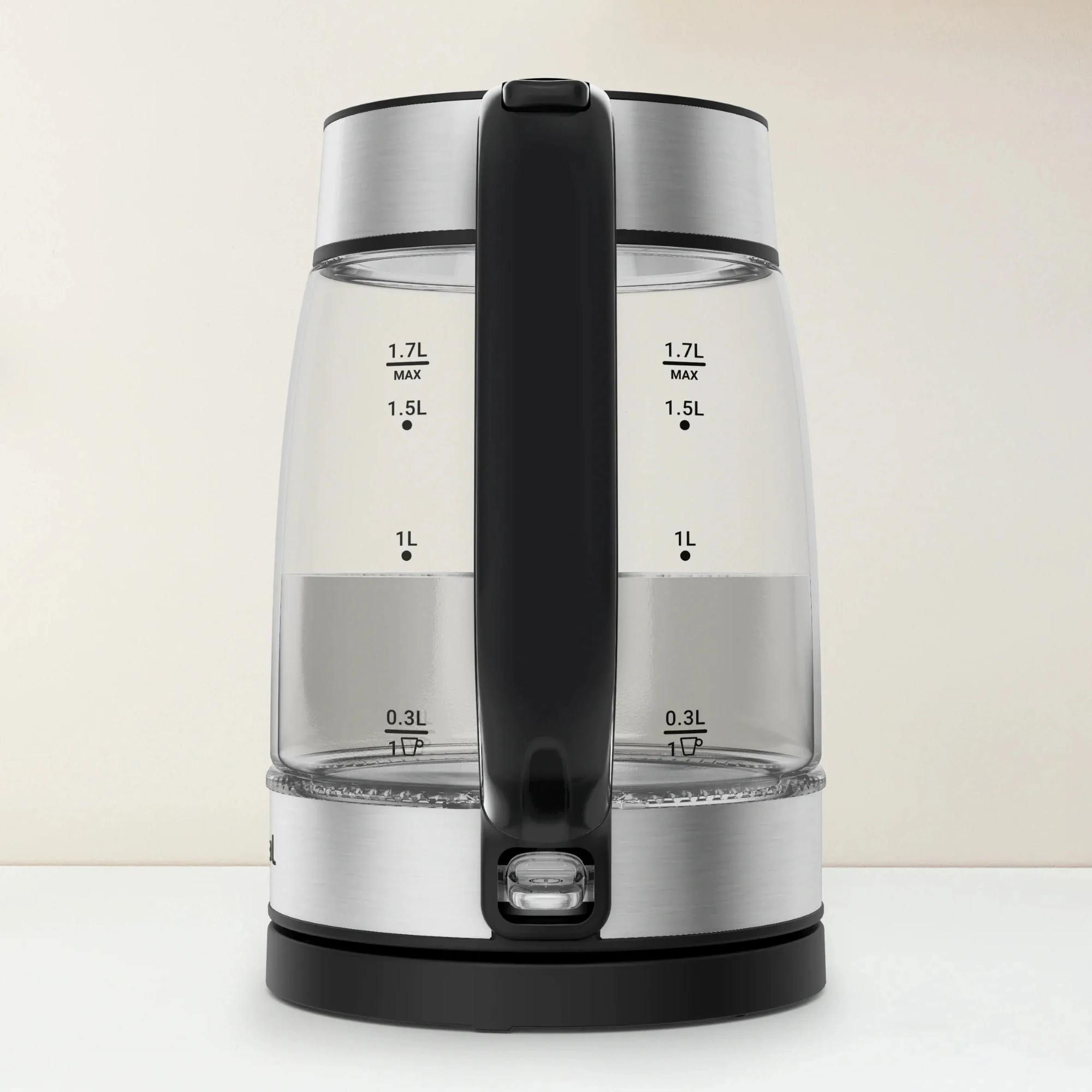 Електрочайник Tefal Glass Kettle KI605830 об'ємом 1,7 літра виготовлений із прозорого скла, що дозволяє контролювати рівень води. Оснащений прихованим нагрівальним елементом потужністю 2200 Вт для швидкого кип'ятіння. Має зручний носик для наливання без розбризкування та внутрішнє підсвічування під час роботи.