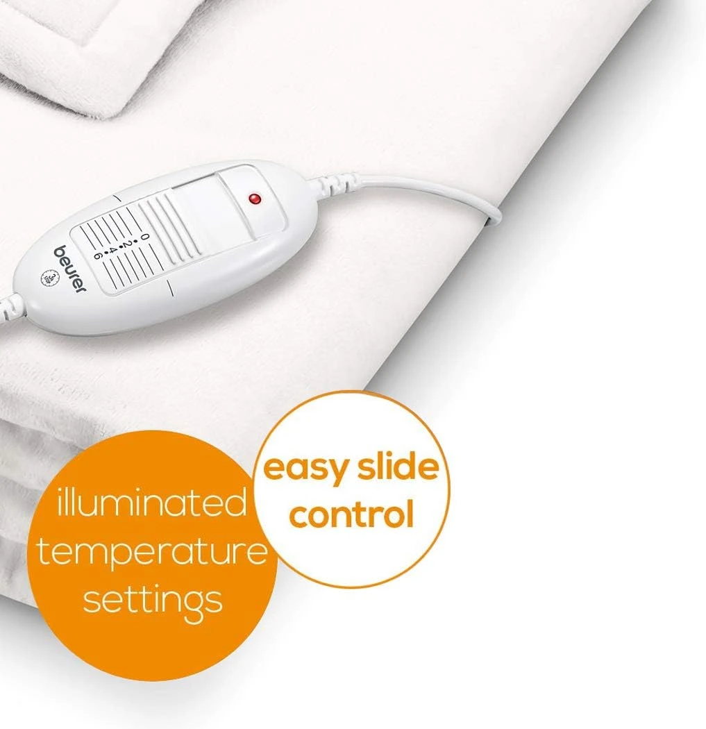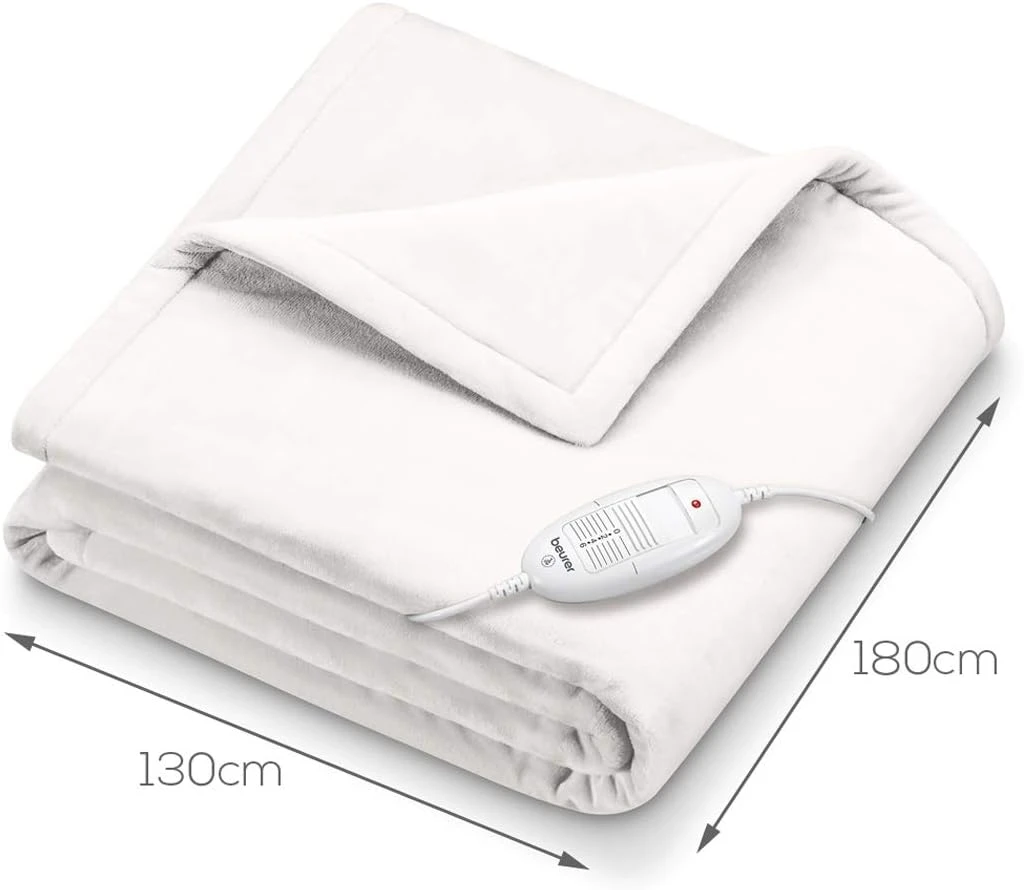 Електроковдра Beurer, від мережі, 180х130см, 100Вт, 6 режимів, фліс, білий