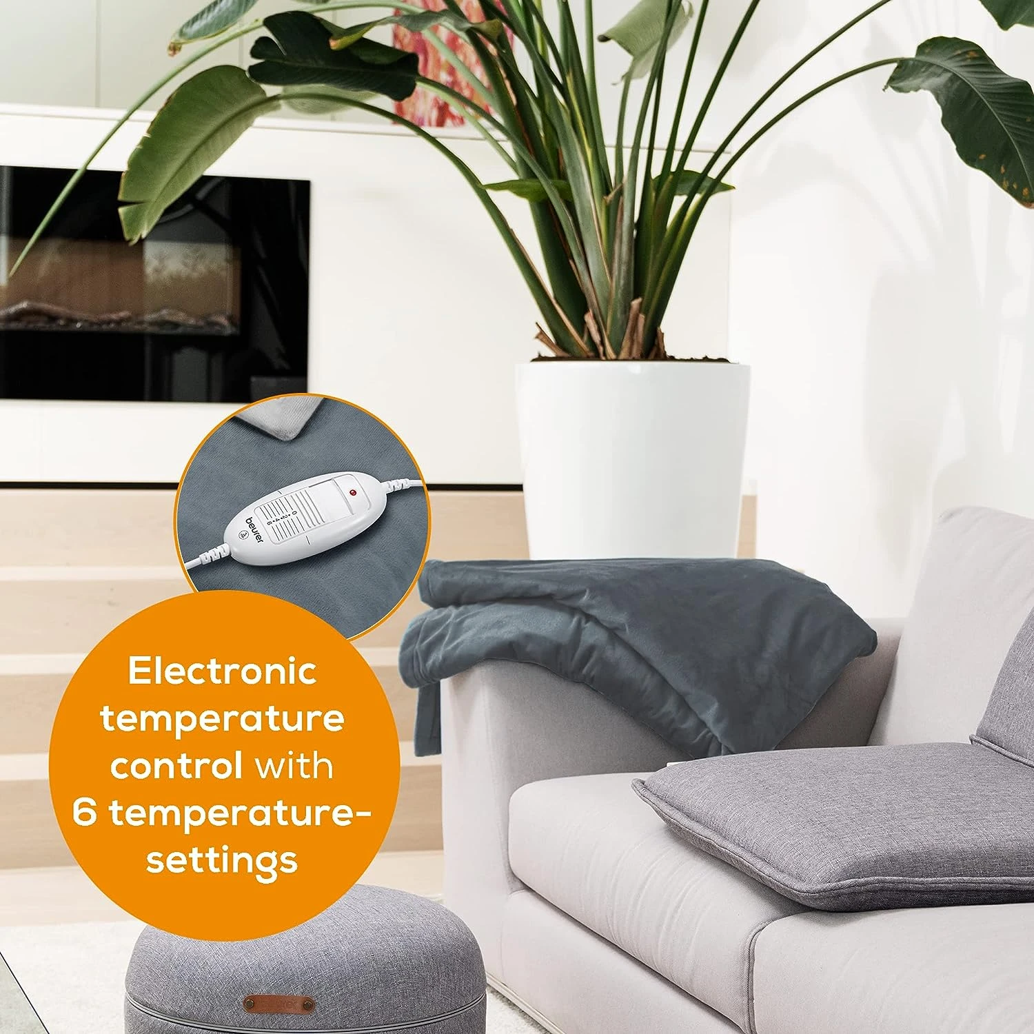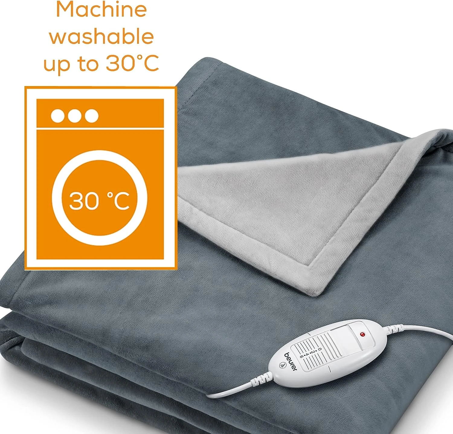 М'яка електроковдра з флісу. Дарує індивідуальне тепло і затишок за будь-якоъ погоди, На вибір шість температурних режимів для максимально комфортного використання. Споживає мало електроенергії, гарантує безпечне використання з системою BSS. Автоматичне вимкнення приблизно через 3 години. Запатентована система електронного регулювання температури. Інформаційний дисплей з підсвічуванням.Система безпеки Beurer (BSS). Можна прати в машині при 30 °C.