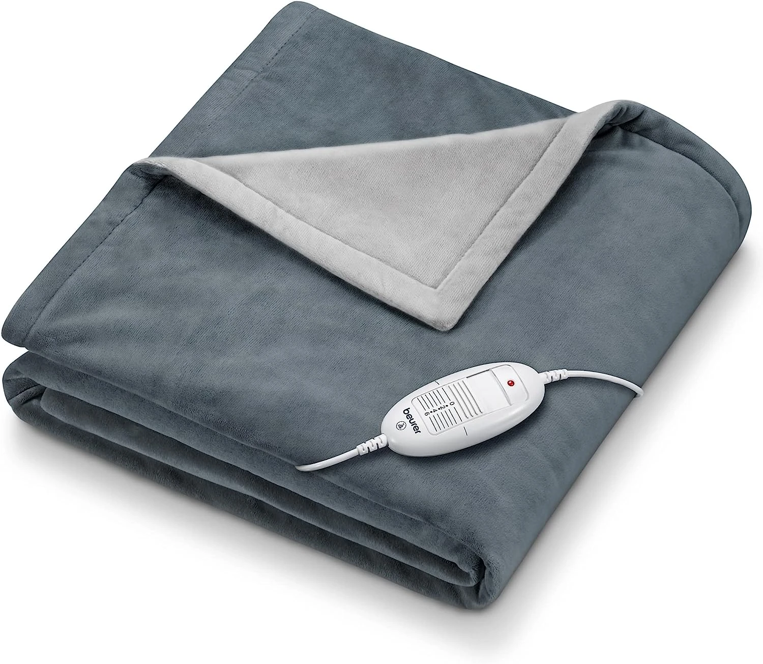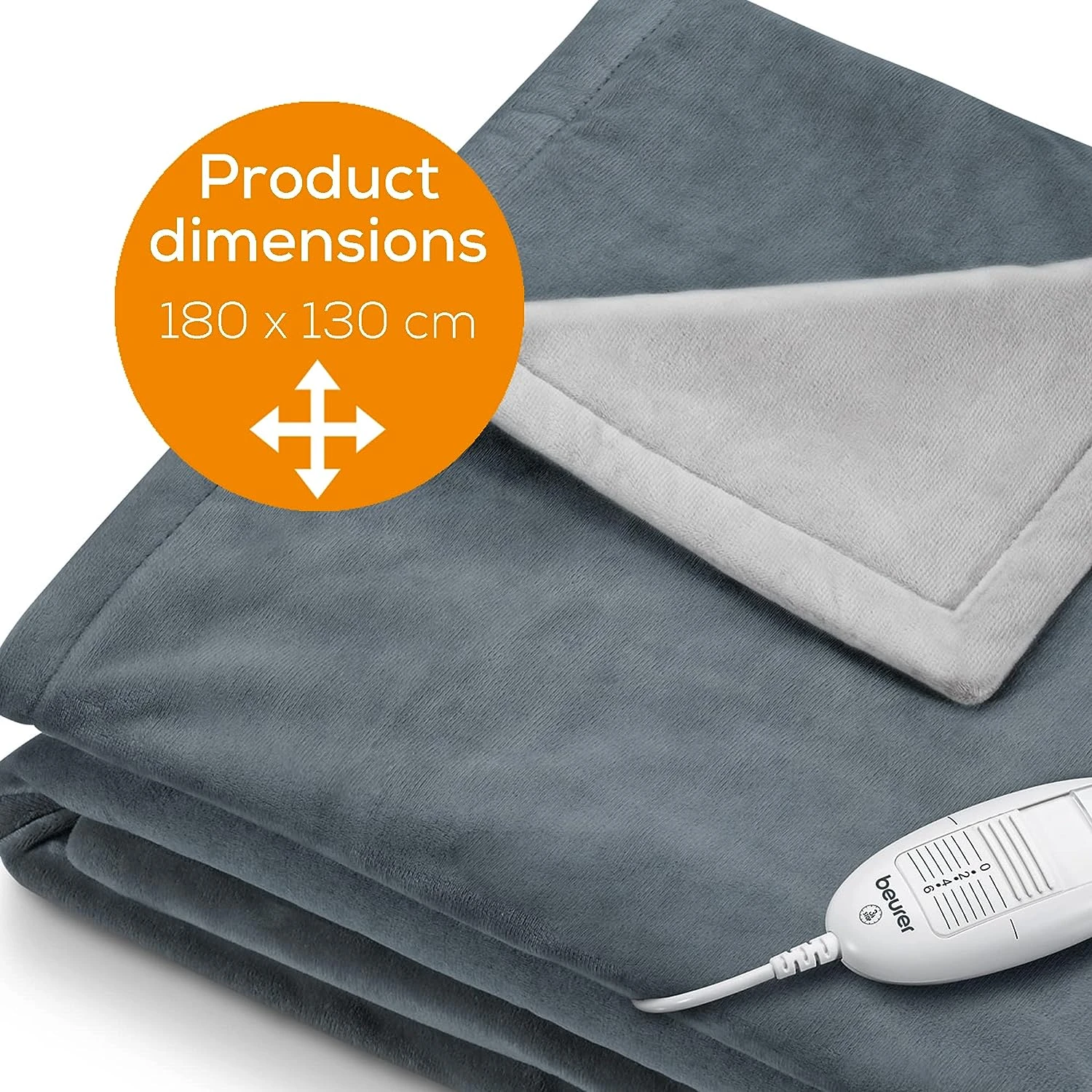Електроковдра Beurer, від мережі, 180х130см, 100Вт, 6 режимів, фліс, темно-сірий
